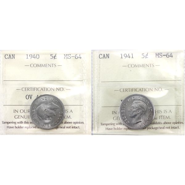 5-cent 1940 & 1941 ICCS MS64. 2pcs