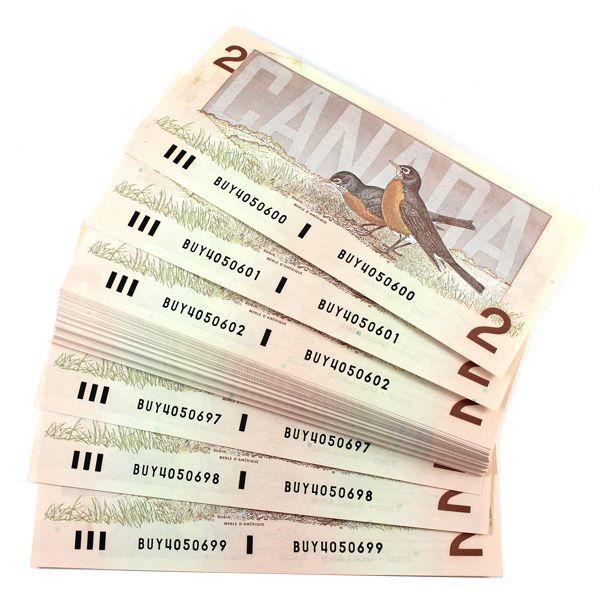 BC-55b 1986 $2 Bundle of 100x Banknotes SN: BUY4050600-699 UNC. 100pcs.