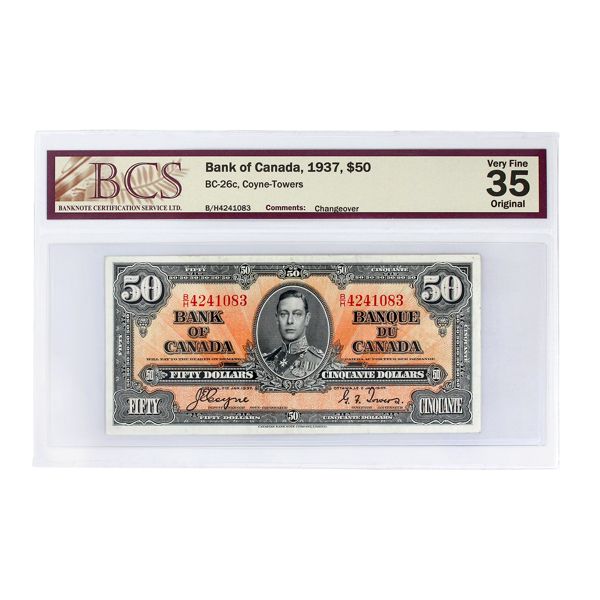 BC-26c 1937 $50 BCS VF35 Original Coyne-Towers SN: B/H4241083