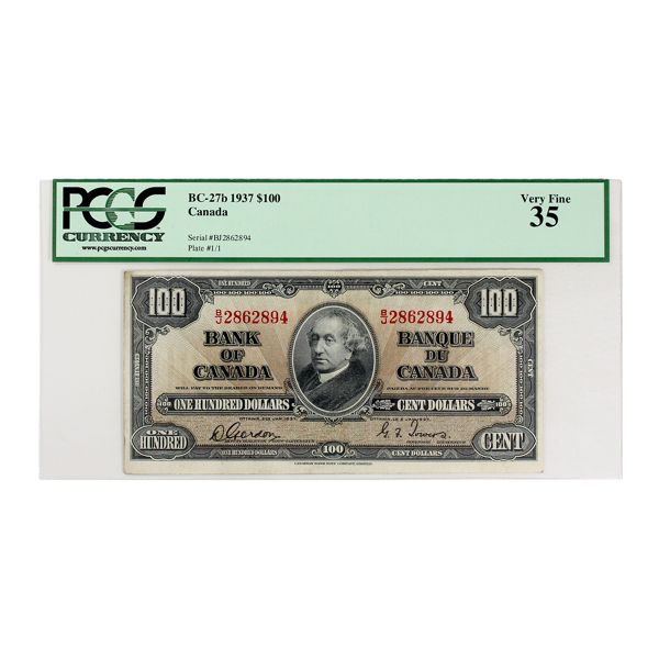 BC-27b 1937 $100 PCGS VF35 Gordon-Towers SN: B/J2862894