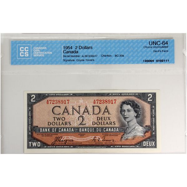 BC-30a 1954 $2 Devil's Face CCCS CUNC64 Coyne-Towers SN: A/B7238917