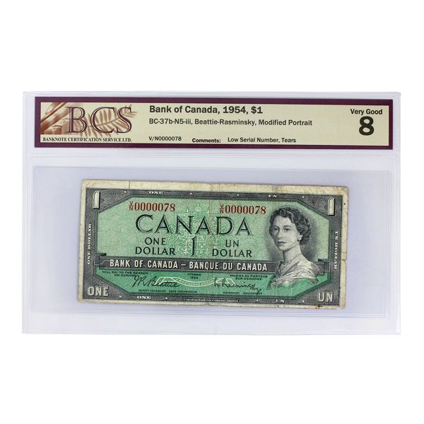 BC-29b-N5-iv 1954 $1 Devil's Face Low Serial # BCS F15 Beattie-Coyne SN: M/A0000200