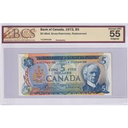 1972 BC-48aA $5, Bank of Canada, Bouey-Rasminsky, Replacement, S/N: *CC2964184, BCS Certified AU-55 Original.