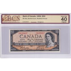 1954 BC-42a $50, Bank of Canada, Beattie-Coyne, Modified Portrait, Changeover, S/N: A/H4130417, BCS Certified EF-40 Original.