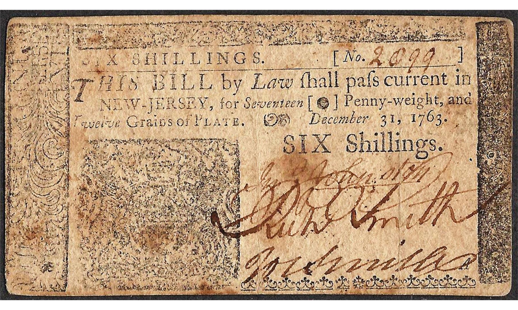 One December 31, 1763 Six Shillings New Jersey Colonial Currency Note.