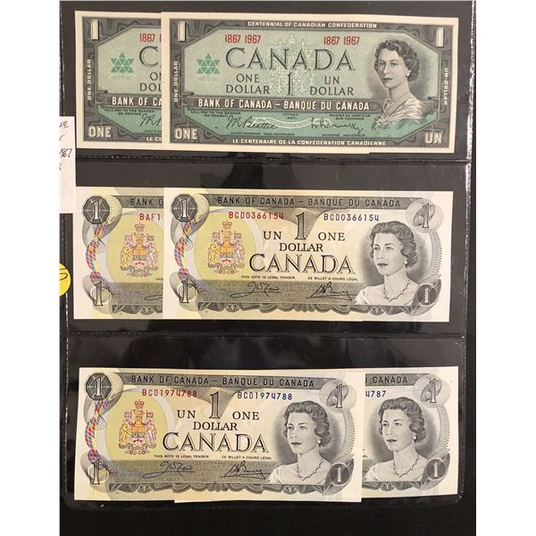6 Canada $1 (2 Centennial, 4 1973) All UNC