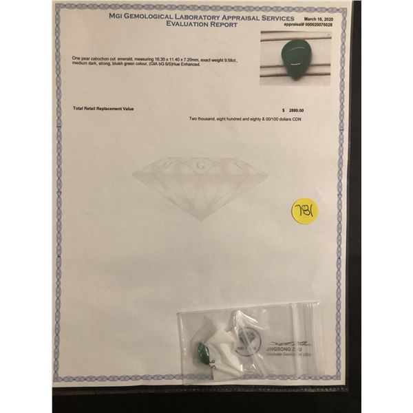 Pear Cabochon Cut Emerald 9.58ct Appraisal $2,880