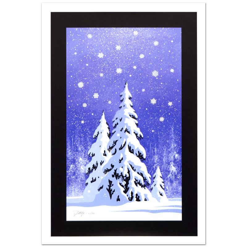 "December" is a limited edition giclee on canvas by Jon Rattenbury, numbered and hand signed by the artist! Includes Certificate of Authenticity! Measures approx. 12" x 20" (image) with an additional 1.5" black border to allow for a gallery wrap display rather than requiring framing.
