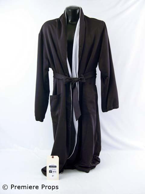 Johnathan's brown/grey satin w/ white terry lining "Robe Works" l/s w/ waist belt robe (includes wardrobe tag / screen worn)