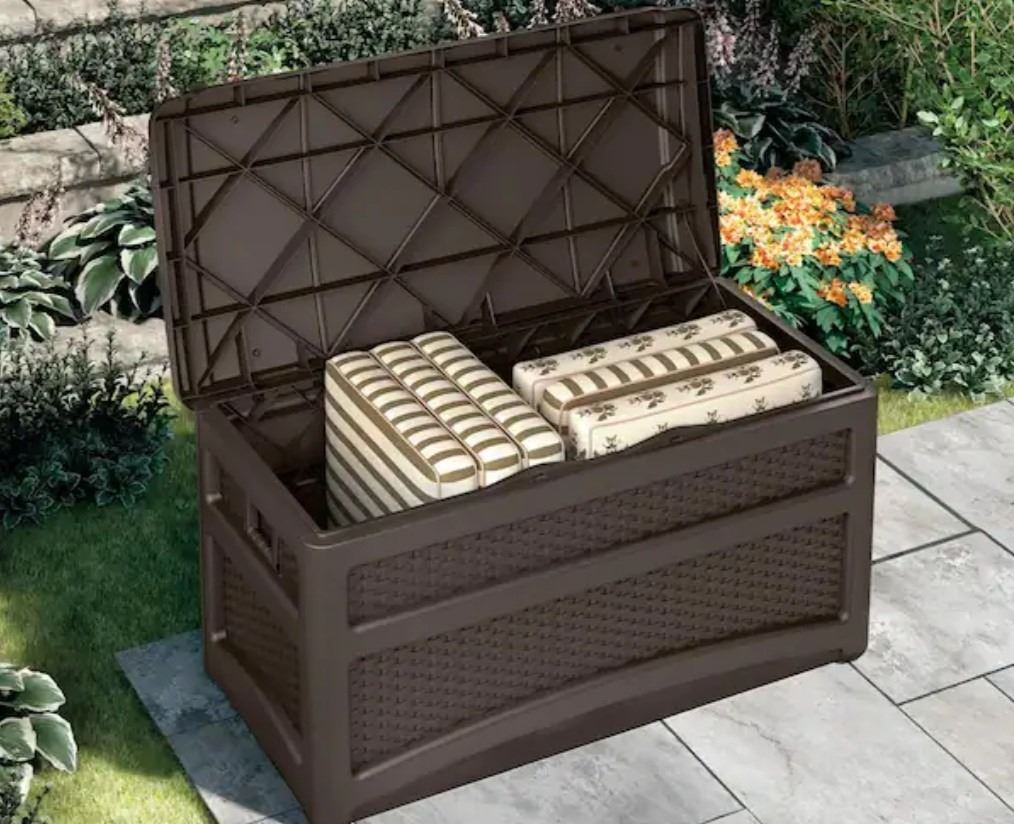 Suncast 73 Gallon Deck Box, All Weather Construction, Pad-Lockable, Open Box, Like New Condition