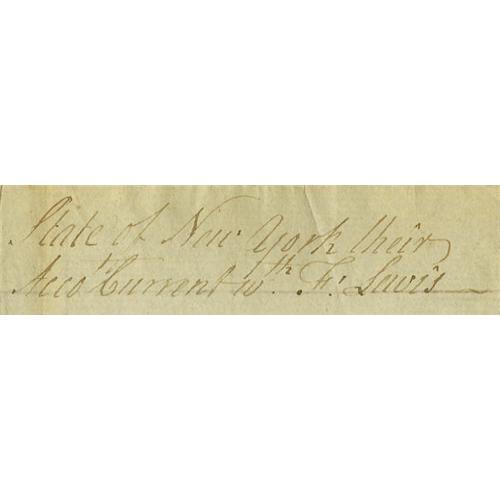 <B>Declaration Signer Francis Lewis Autograph Document Signed</B></I> twice "<I>Frans Lewis</B></I>" on front and "<I>F Lewis</B></I>" on verso. One page, 15.5" x 9.5", New York, March 13, 1778. A handwritten itemized account submitted to the state of New York for sums due him. Entries include: items purchased at Baltimore; supplies for the army purchased at Yorktown and Valley Ford [sic Forge?]; $200 cash for paper used by the state paid by another Declaration signer Robert Morris. Lewis was also a delegate to the Continental Congress in 1775 and signed the Declaration of Independence as a representative of New York. His Long Island property was destroyed by the British during the Revolutionary War. There is a boulevard named after him in Queens, New York, as well as a high school. This war-dated letter signed by one Declaration signer (twice) and mentioning another is very important and desirable. Fine condition. From the Henry E. Luhrs Collection.