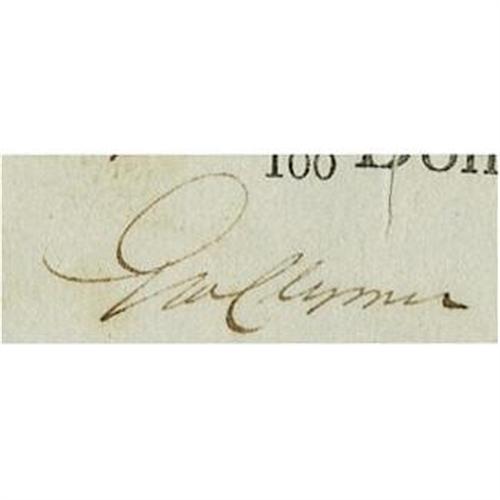 <B>Declaration Signer George Clymer Document Signed</B></I> "<I>Geo. Clymer.</B></I>" One page, 5.2" x 2", Philadelphia Bank Check, Philadelphia, September 10, 1804. This lot features a cancelled check signed by George Clymer written for $20. George Clymer was a signer of the Declaration of Independence representing Pennsylvania. The document is in fine condition; document has been laid down on another piece of paper; cancellation marks present over some of text; staining present near the center of the document. From the Henry E. Luhrs Collection.
