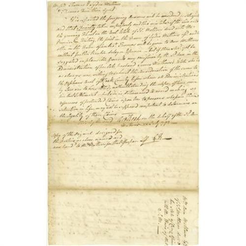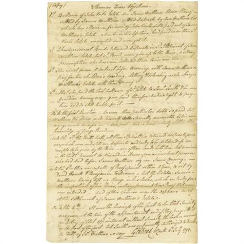 <B>Declaration of Independence Signer George Read Autograph Document Signed Twice,</B></I> “<I>Geo Read</B></I>”, with a second signature on the verso, two pages, 8” x 13.25”, Newcastle, Delaware, July 3, 1792. A file copy of a judgment regarding a debtor. Penned on fine linen stock having professional archival repairs to splits on folds. Good condition. <I>Ex. Henry E. Luhrs Collection. </B></I><BR><BR><b>Shipping:</b> Flat Material, Small (<a target="_blank" href="http://www.heritageauctions.com/common/shipping.php">view shipping information</a>)