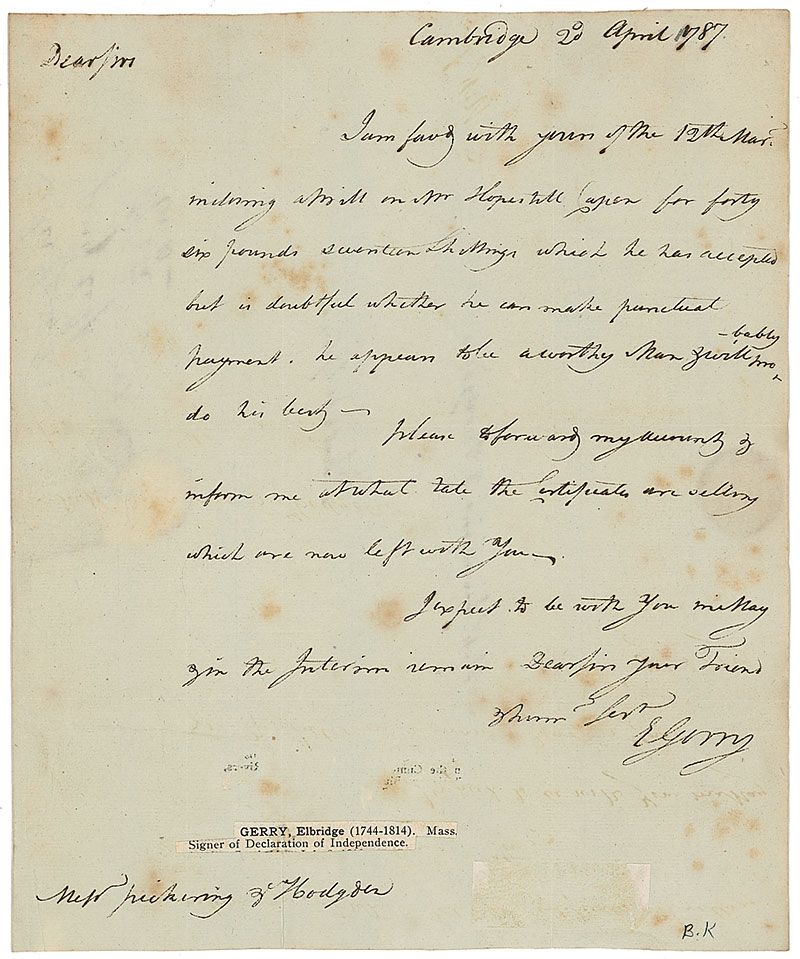 Signer of the Declaration of Independence from Massachusetts (1744–1814) who later served as vice president under James Madison. His name entered the language as a result of his support of politically advantageous redistricting, which became known as ‘ger