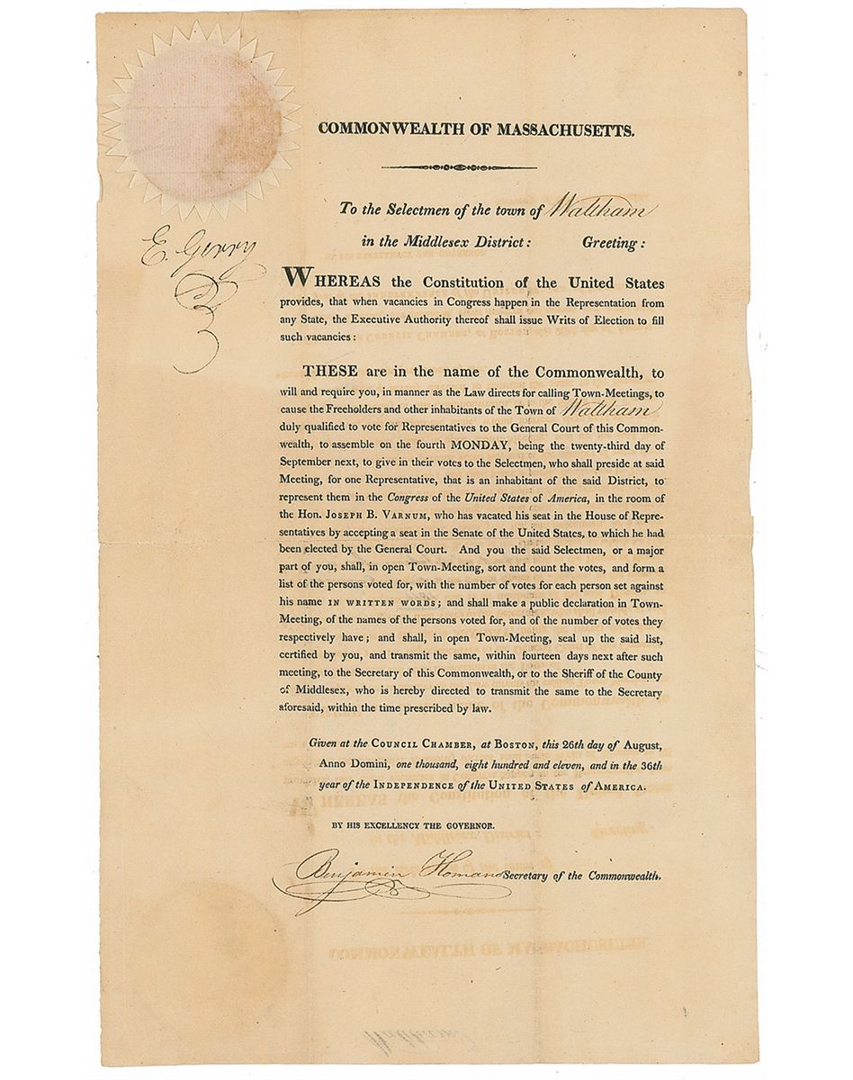 Signer of the Declaration of Independence from Massachusetts (1744–1814) who later served as vice president under James Madison. His name entered the language as a result of his support of politically advantageous redistricting, which became known as ‘ger