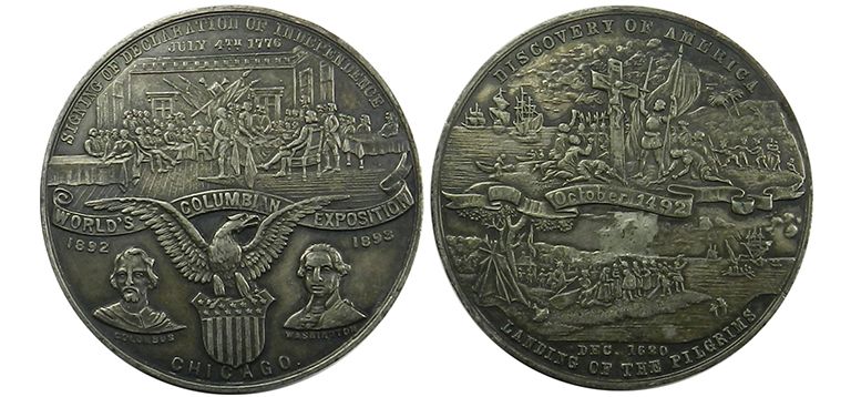 Declaration of Independence Medal, 1893. Silvered WM, 58mm, plain edge. Eglit 36A; Rulau X9A. Toned EF.