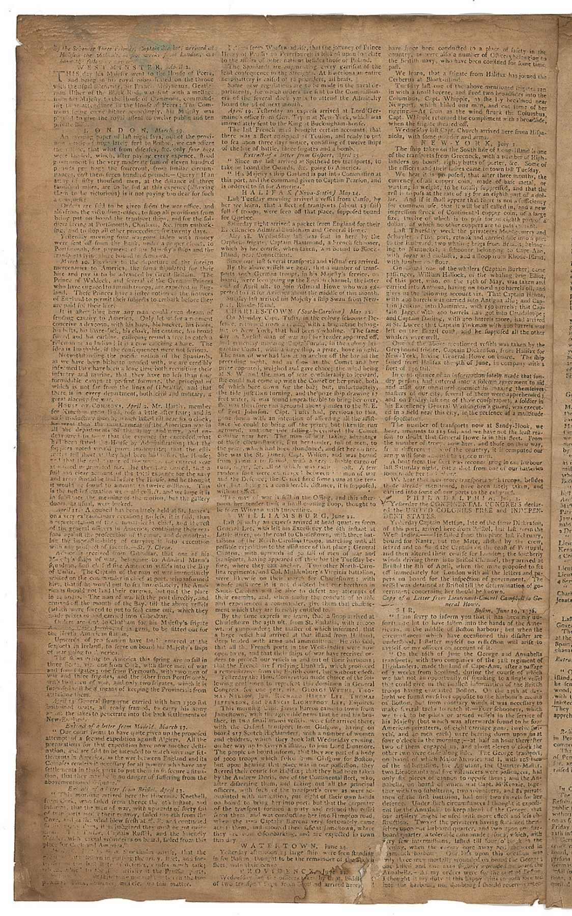 The decision to declare independence was voted on by delegates from the 13 colonies and approved on July 2, 1776, upon which John Adams wrote that the date would be ‘the most memorable Epocha, in the History of America. I am apt to believe that it will be celebrated, by succeeding Generations, as the great anniversary Festival.’ The wording of the actual document was still being revised at the moment this newspaper was published, and on the following day, July 4, the Declaration of Independence was famously adopted. A rare and historically important newspaper from this most important moment in American history.