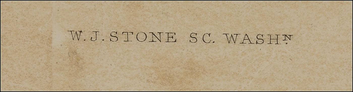 Charged with heading the project, Secretary of State John Quincy Adams commissioned engraver William J. Stone of Washington to reproduce the Declaration by engraving a copperplate facsimile from the original utilizing a wet-ink transfer process. The Declaration was moistened and ink was lifted directly from it and transferred to a clean copperplate, which was then engraved, creating a perfect copy of the original document. Stone completed the task of engraving in 1823. However, during the ink transfer the original document was almost destroyed, making the Stone copperplate exceedingly rare as the only accurate replica of the original. Nevertheless, he printed 201 copies on the same type of parchment as the original. Approximately 30 of these are known to have survived, 19 of which are in museums. The Stone copperplate was then placed in storage. Twenty years later, in 1843, Peter Force was commissioned by Congress to print a series of books that became known as the American Archives. The purpose of the nine-volume set was to create the founding documents of the United States. For the occasion, the Stone engraving was taken from storage and used to produce copies on rice paper for Volume I of the Fifth Series of the Archives (the seventh volume out of the nine). The copies were distinguished from the original by an engraving in the lower left corner “W.J. Stone S.C. Washn.” Printed in 1848, each copy was folded into the First volume of the 5th Series of books. After printing the plate was again retired and is now displayed at the National Archives. Pre-certified John Reznikoff/PSA/DNA and RRAuction COA.