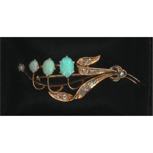 <tr><td>Title:Deco 14K Rose Gold Opal Diamond Brooch</td></tr>