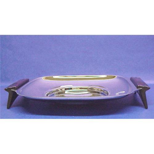 Wonderful 1940's Shiny Chrome Art Deco large serving dish, standing on beautiful cherry bakelited stands-legs - Original paper sticker reads: Gourmates styled by Glo-Hill Canada - Excellent condition, seems never used - Measures 11" x 9 1/4" - US Buyer to pay 7.00 for shipping plus insurance if desired - We accept Paypal,Visa, Master Card or Money Order - Thank You very much for looking!