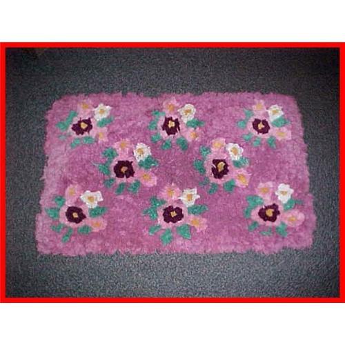 </font></strong>This THICK 22" by 35" Handmade shag-type rug has white, yellow, pink and burgundy flowers on a rose background. Good condition with typical handmade characteristics; No major damage. This rug is very thick and dense. I bought this rug at a Midwestern estate auction.</font>