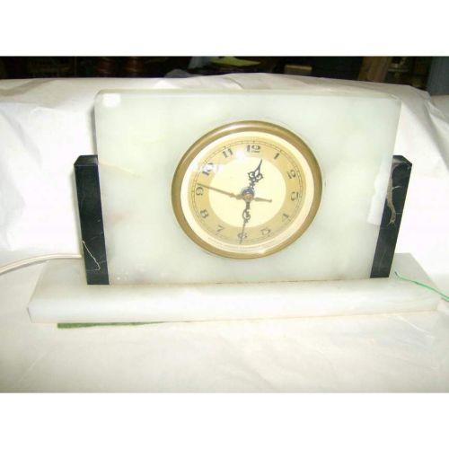 Deco alabaster clock, face marked Whitehall Hammond synchronous movement, 6 1/2"h, 12"l, 2 1/2"deep