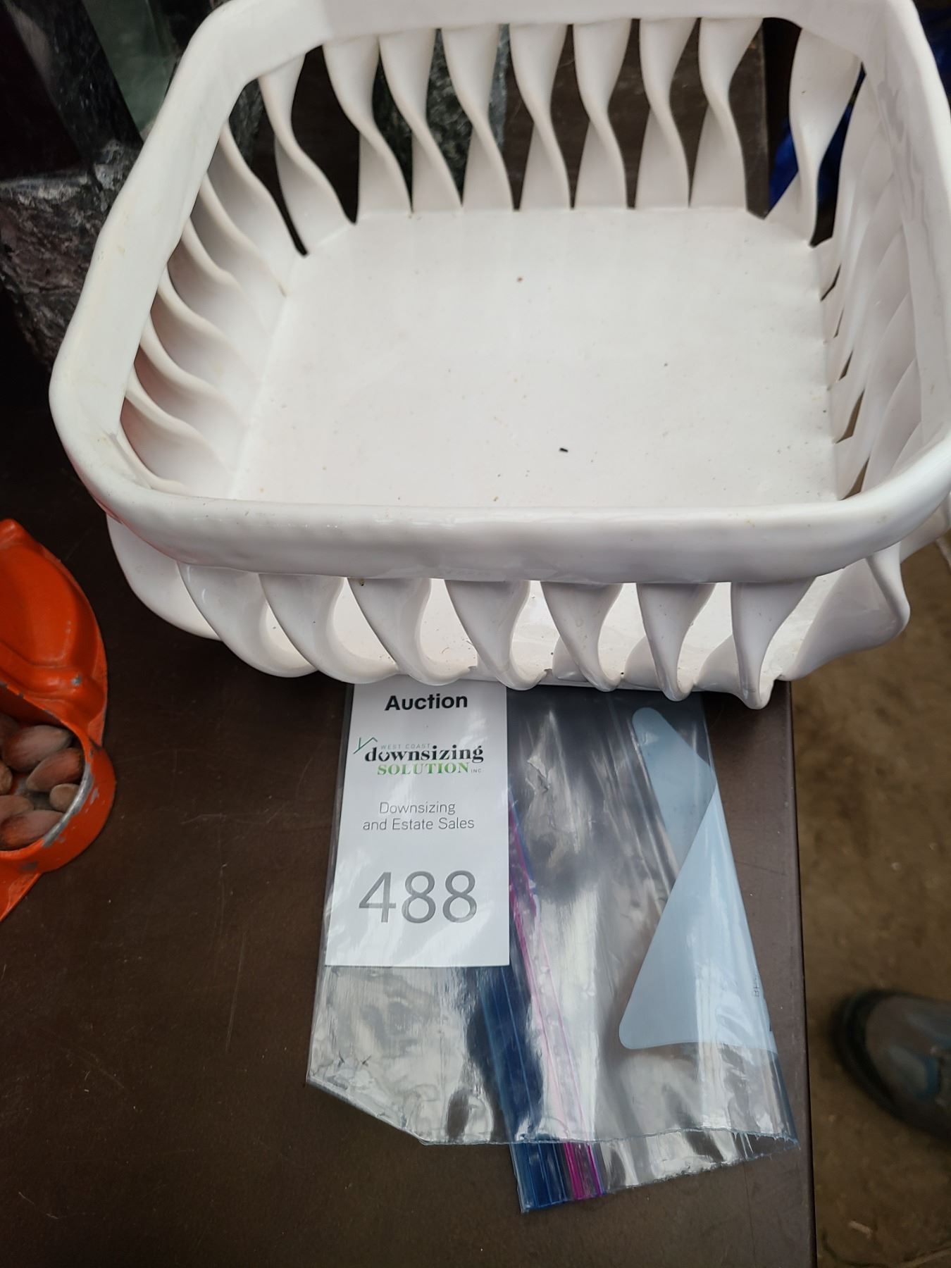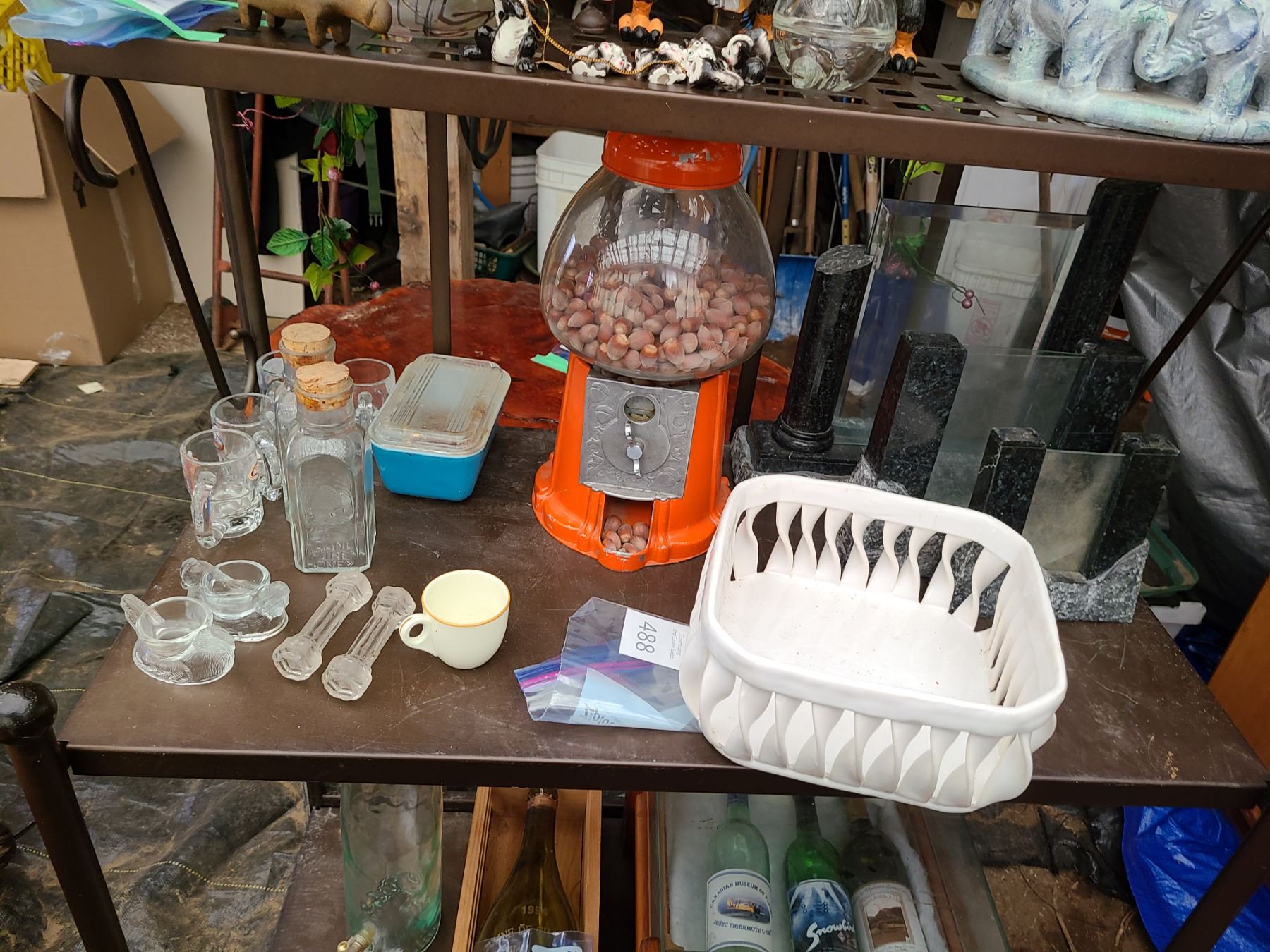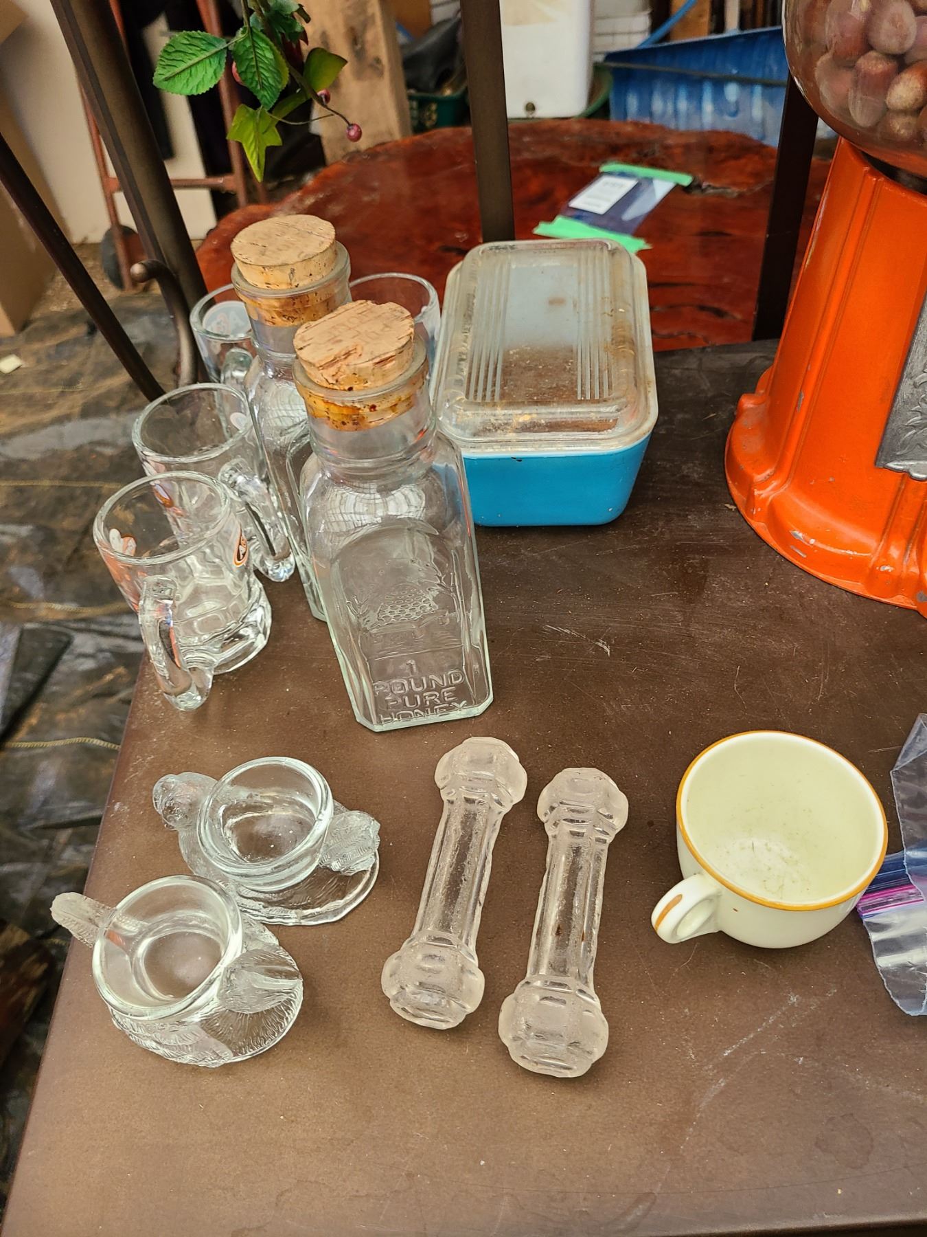 Lot includes glass items, pecan machine, square ceramic bowl, and more. Bring packing material. Pickup at 10 am.