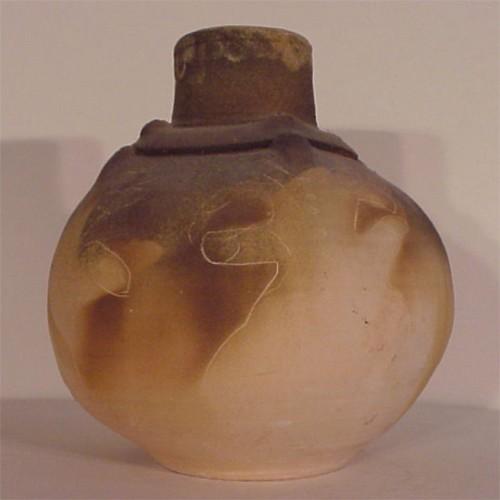 Decorative Arts: Ceramic VESSEL, large incised, painted and fired ceramic vessel, 14" tall.