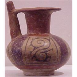 Two Pre Columbian objects, 1 vessel with spout, 6" high, in fair condition; one bowl, 13" diameter, broken, cracked and in need of repair. (2) STARTING BID $20. ESTIMATE $20 TO $1000