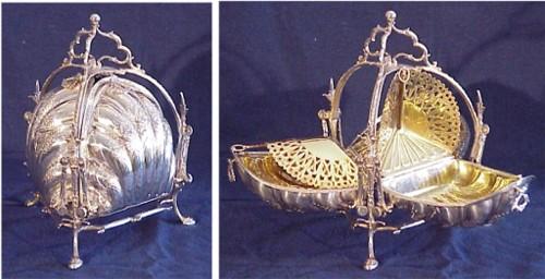 Decorative Arts: Silver High Teac Service, HIGH TEA SCONE SERVICE, highly stylized silver plate...