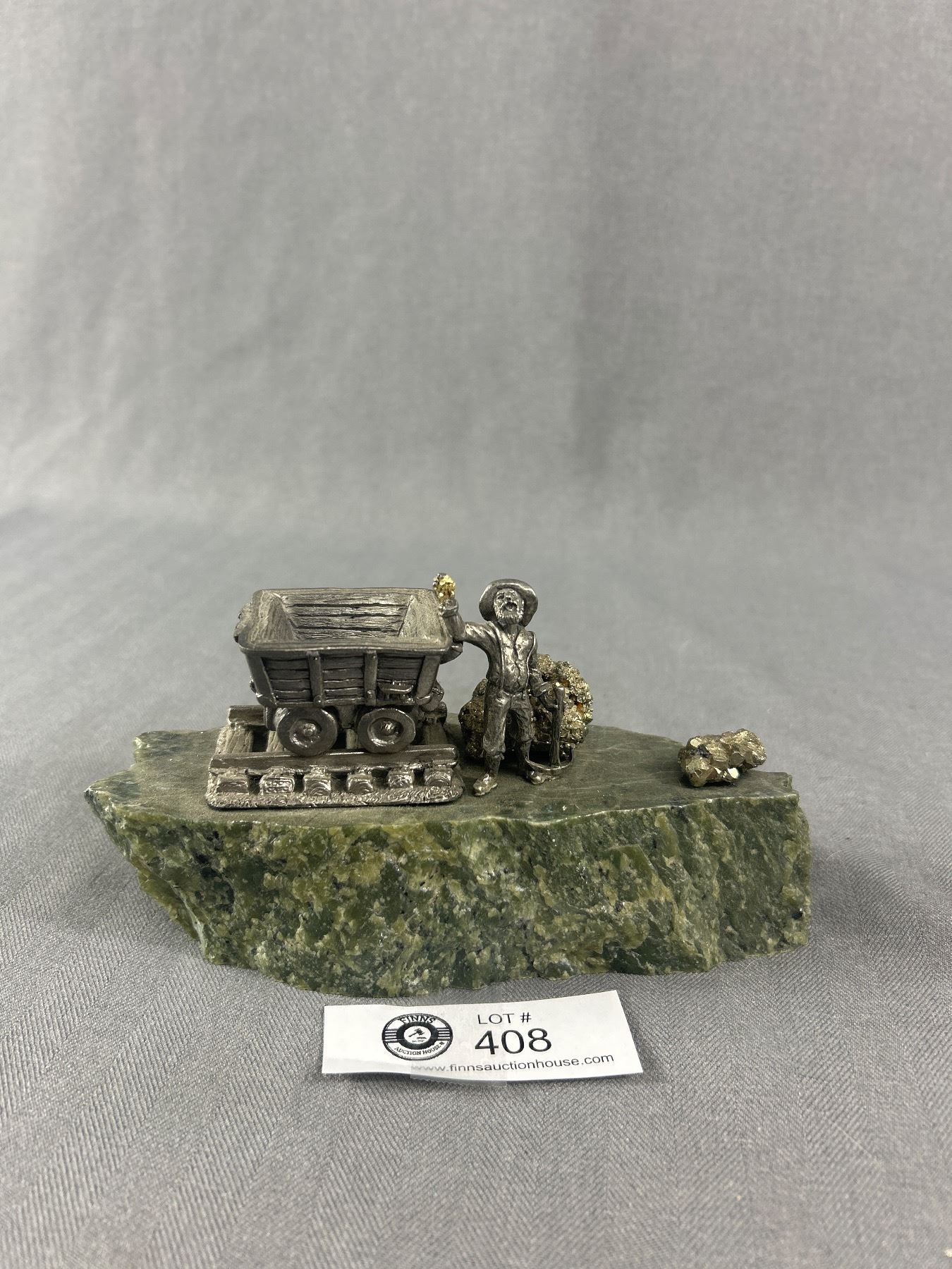 Decorative BC Jade Piece w/ Pyrite & Pewter Miner Approx. 7" Long