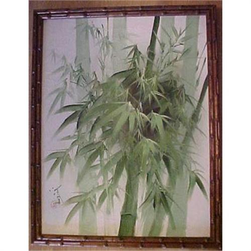 Painting on Canvas representing some bamboo shoots. The Painting is 20" x 24" and is framed.