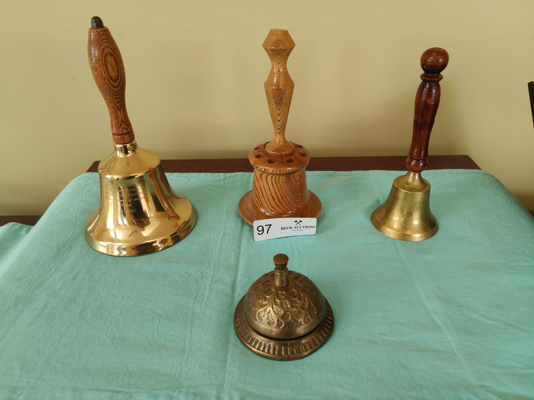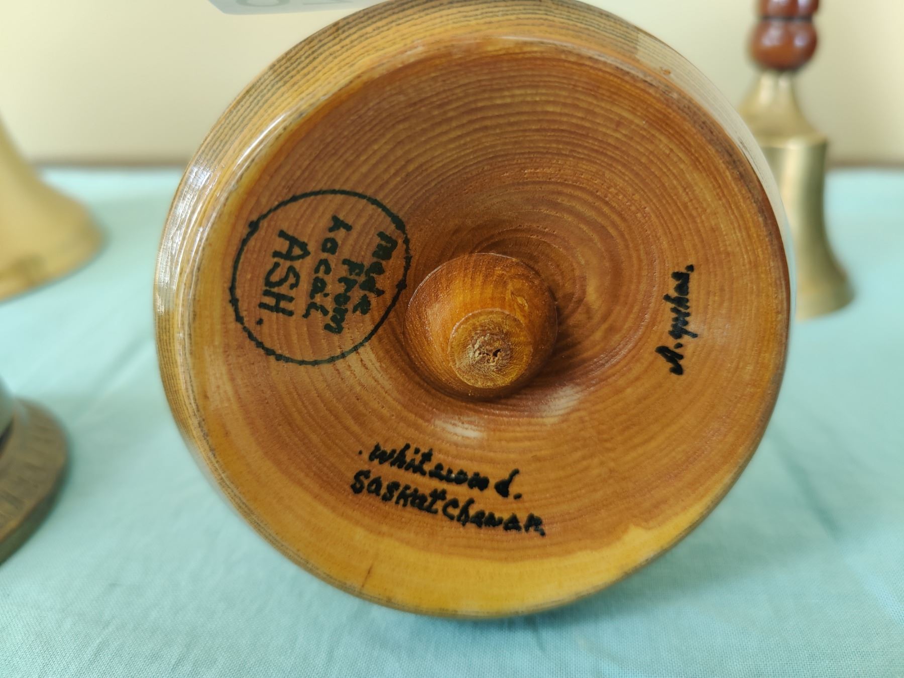 Very old call bell, handmade wooden pen holder (Local ash wood from Saskatchewan).