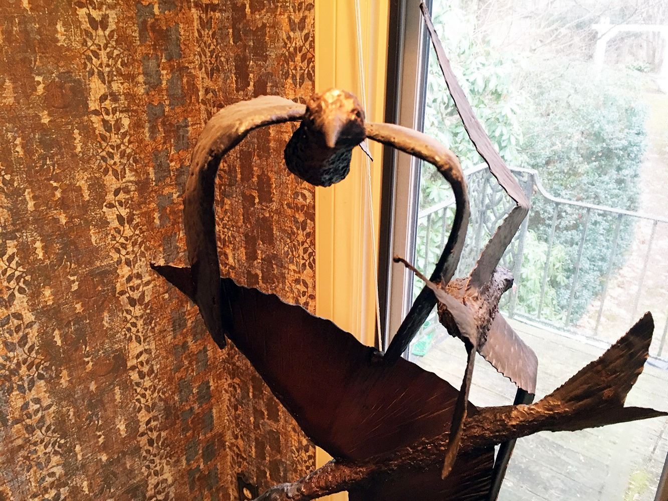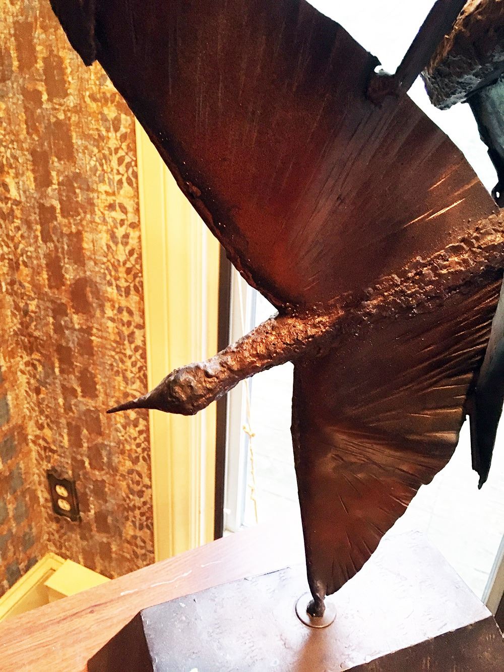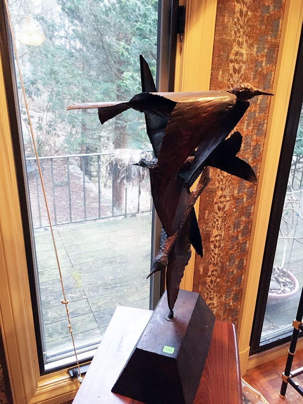Decorative birds in flight metal statue, made in Italy by International House, measures approx. 30 inches tall. pd