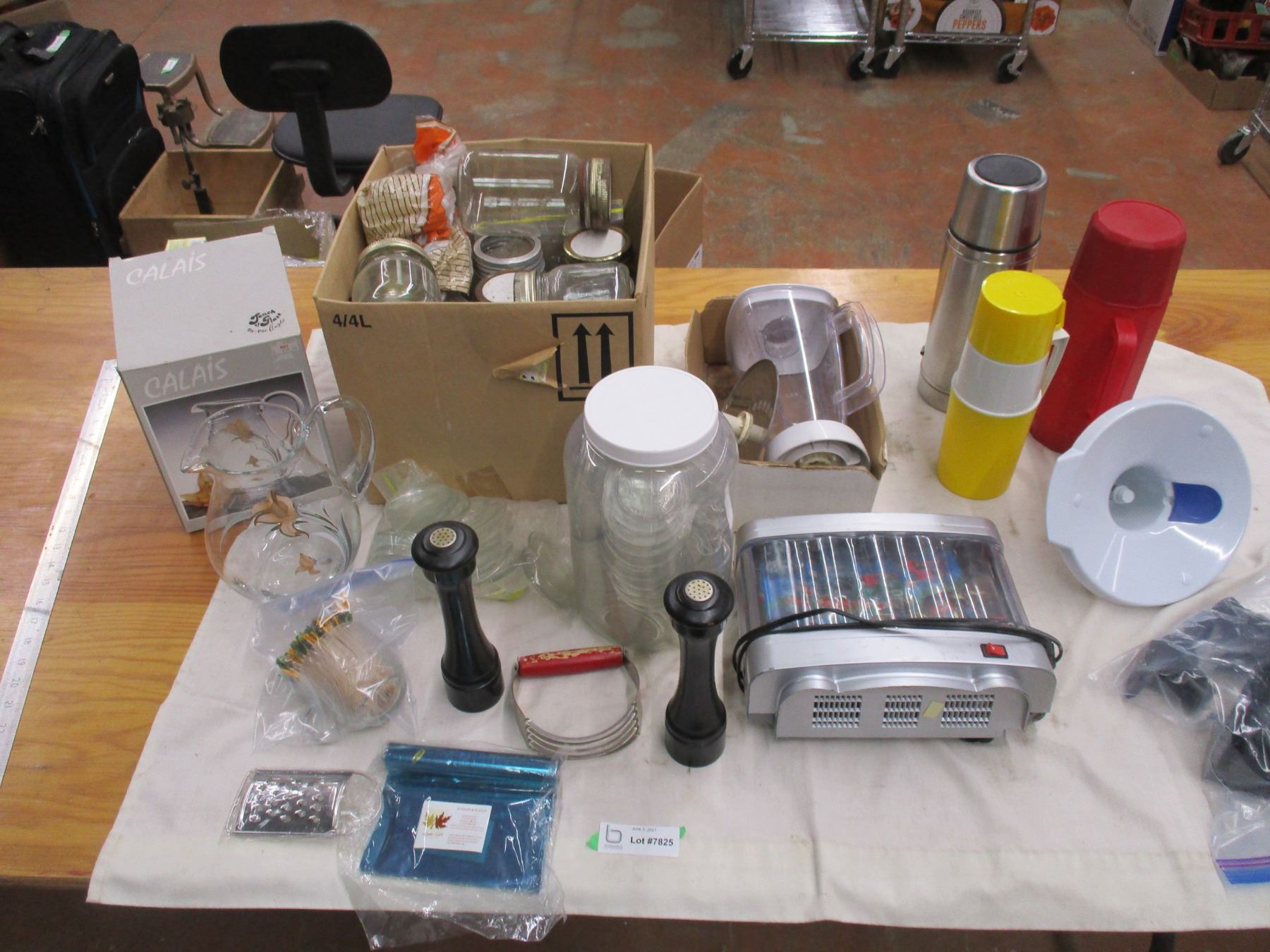 Decorative Glass Water Pitcher in Box + Assorted Household Goods
