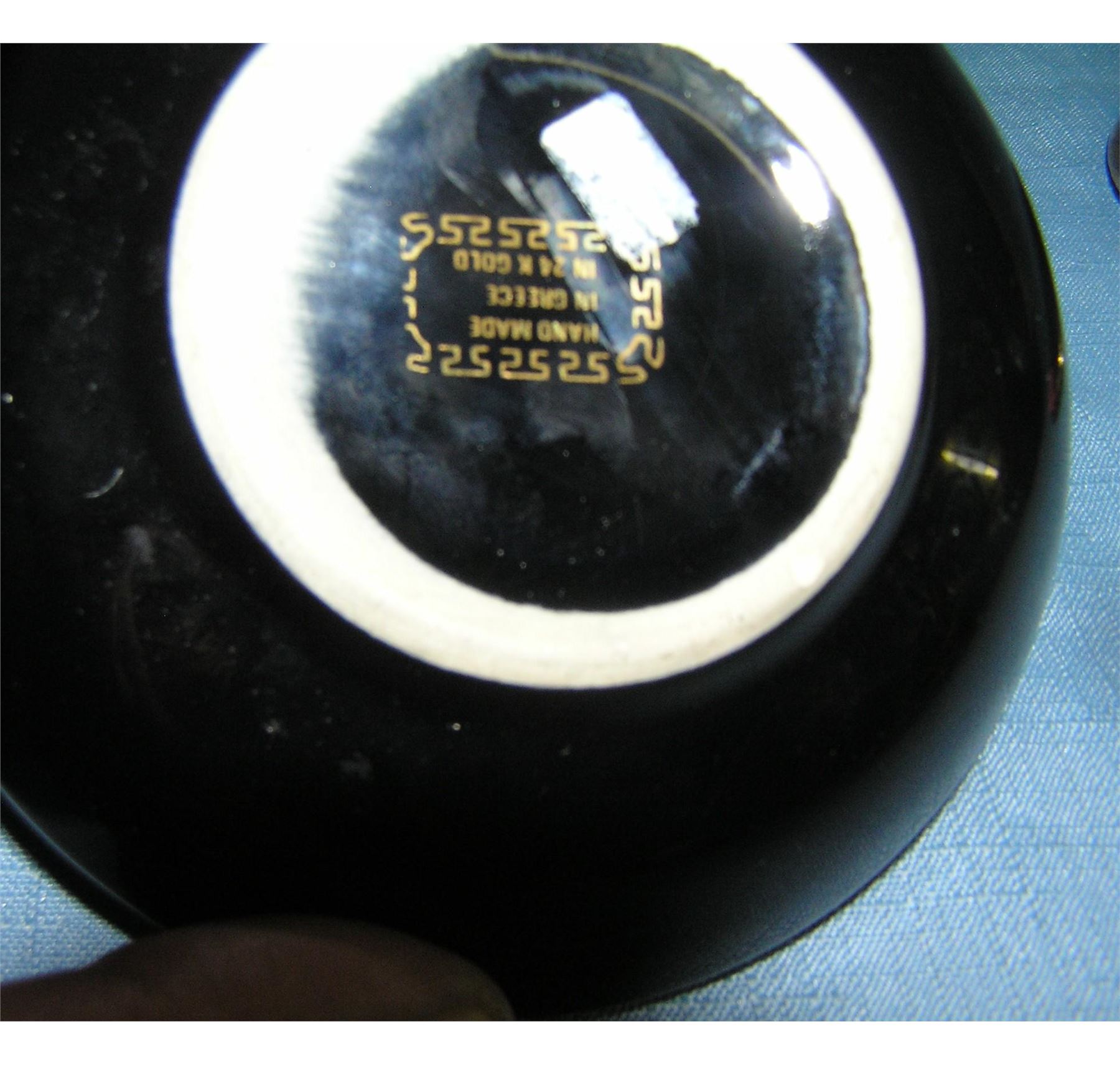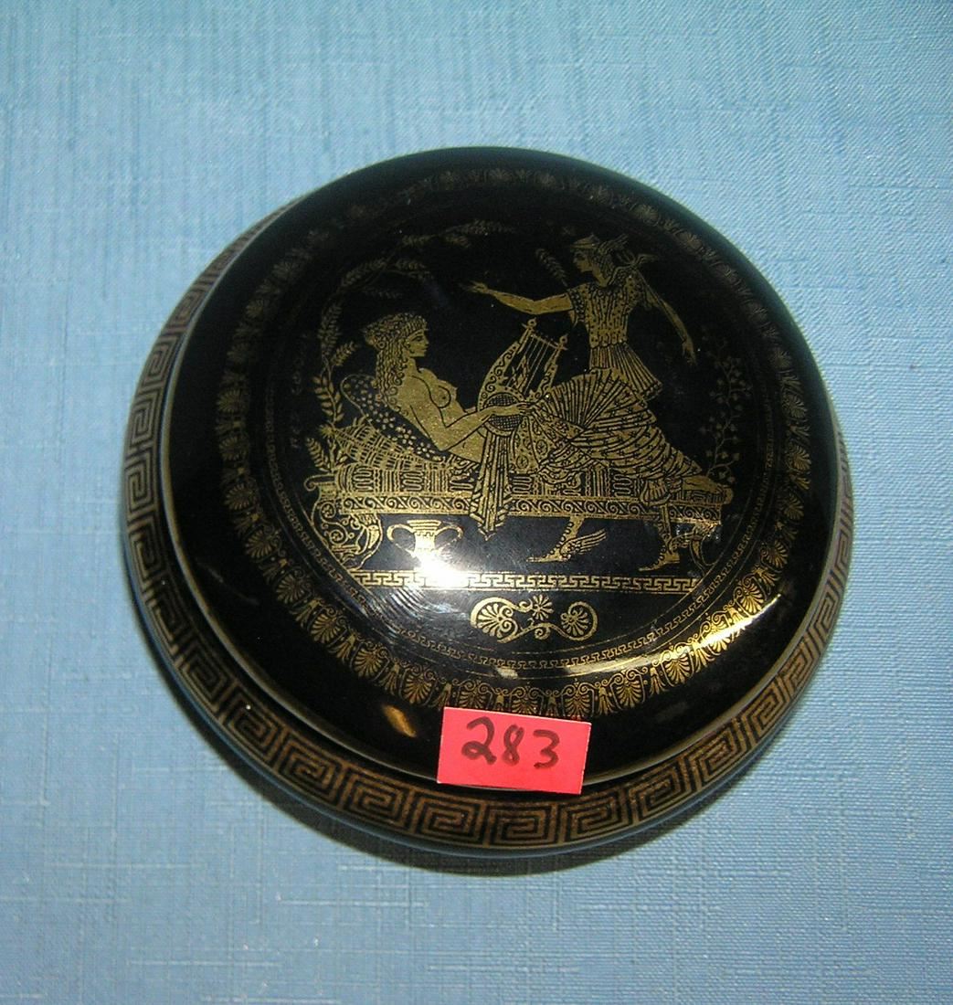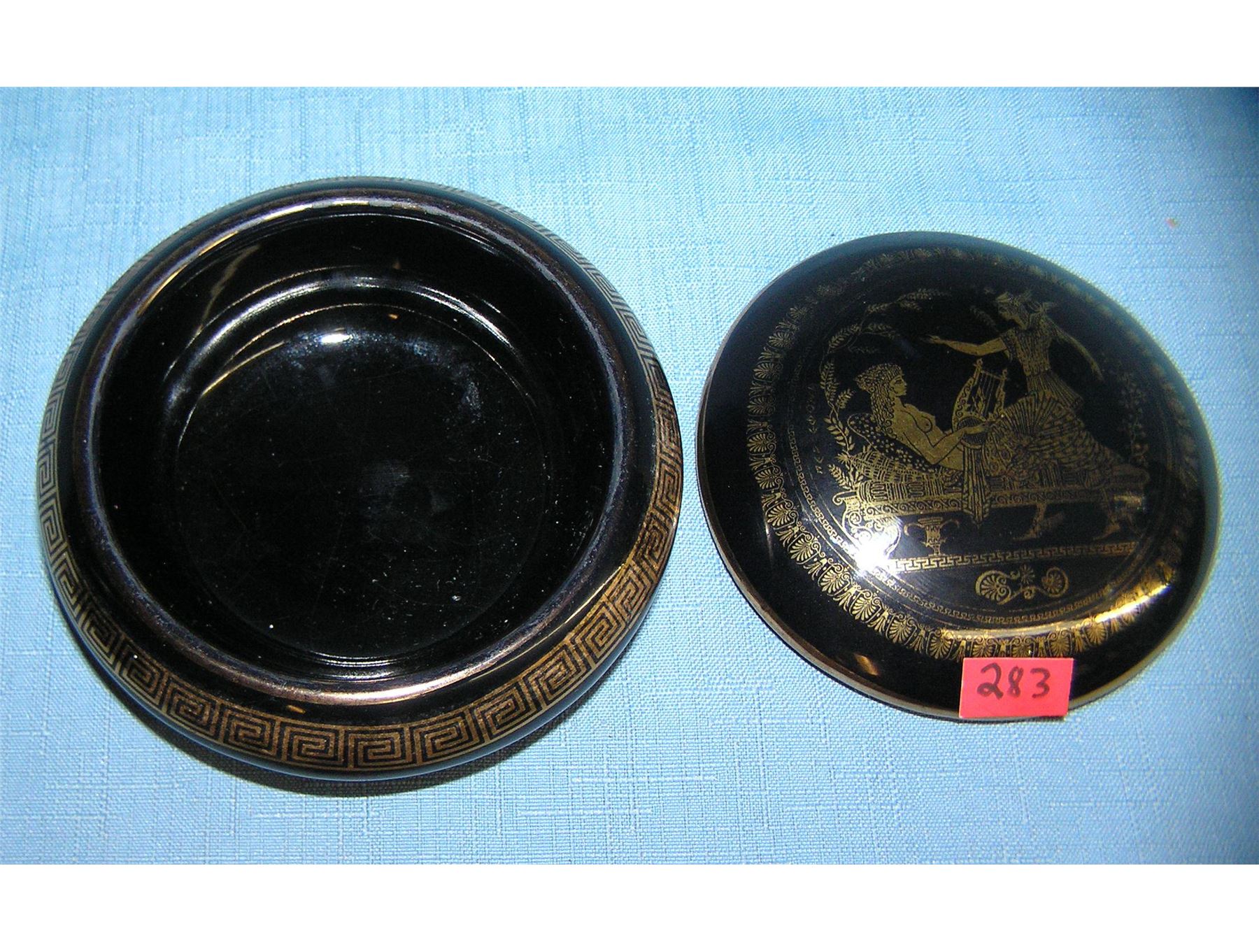 High quality decorative Greek trinket box/powder container dark cobalt blue with 14K gold. Marked on base made in Greece. est. value $80.00-$100.00