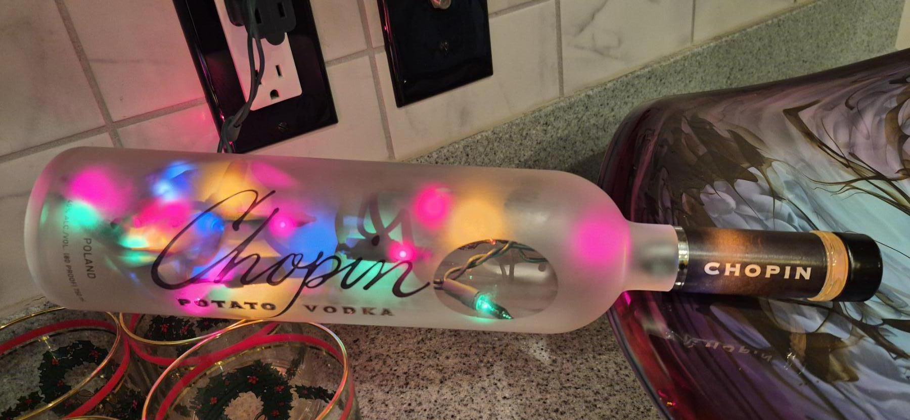 Decorative Illuminated Chopin Vodka Bottle - with colored mini lights