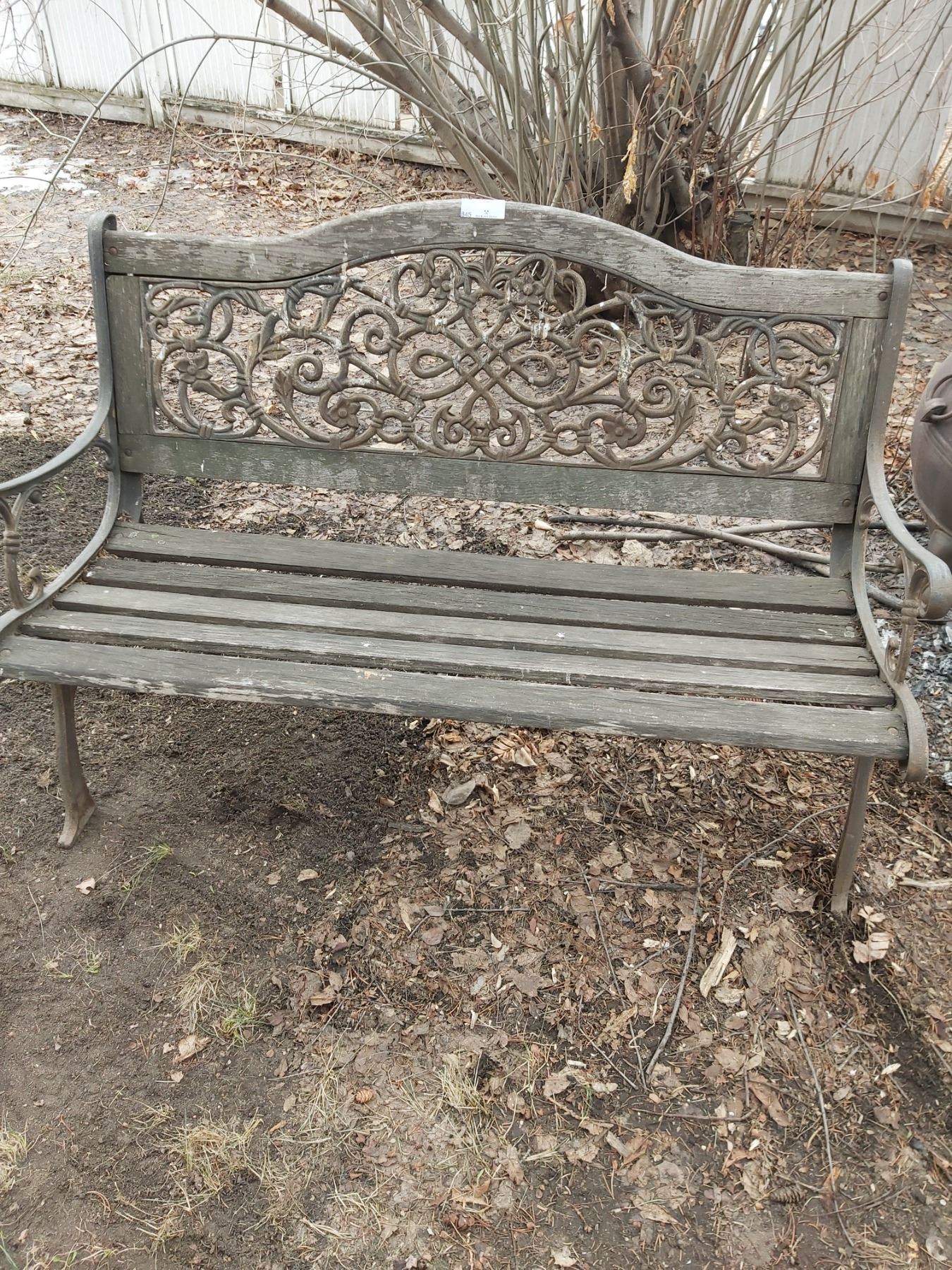 Decorative Iron Back and Leg Garden Bench, Needs some TLC