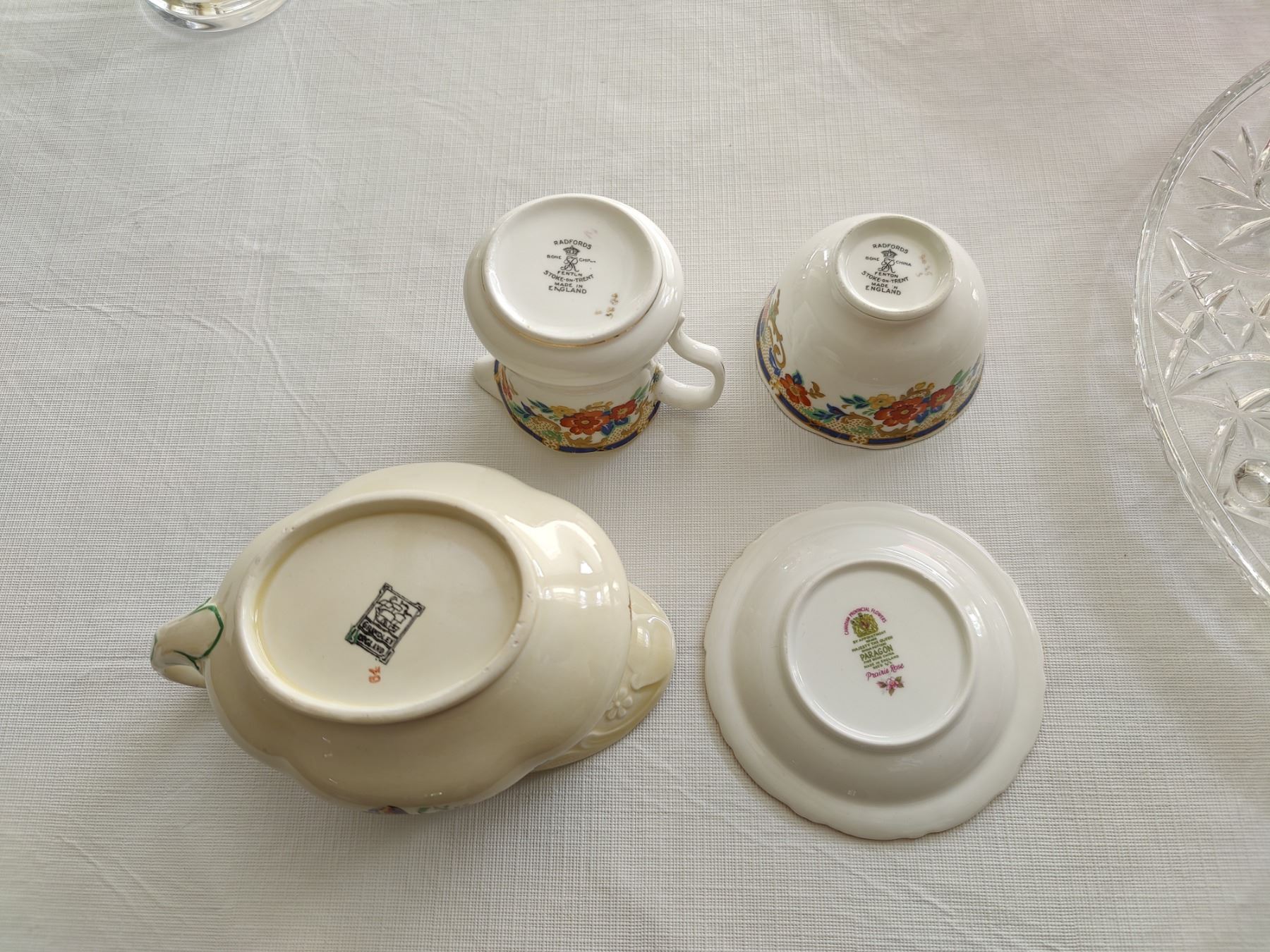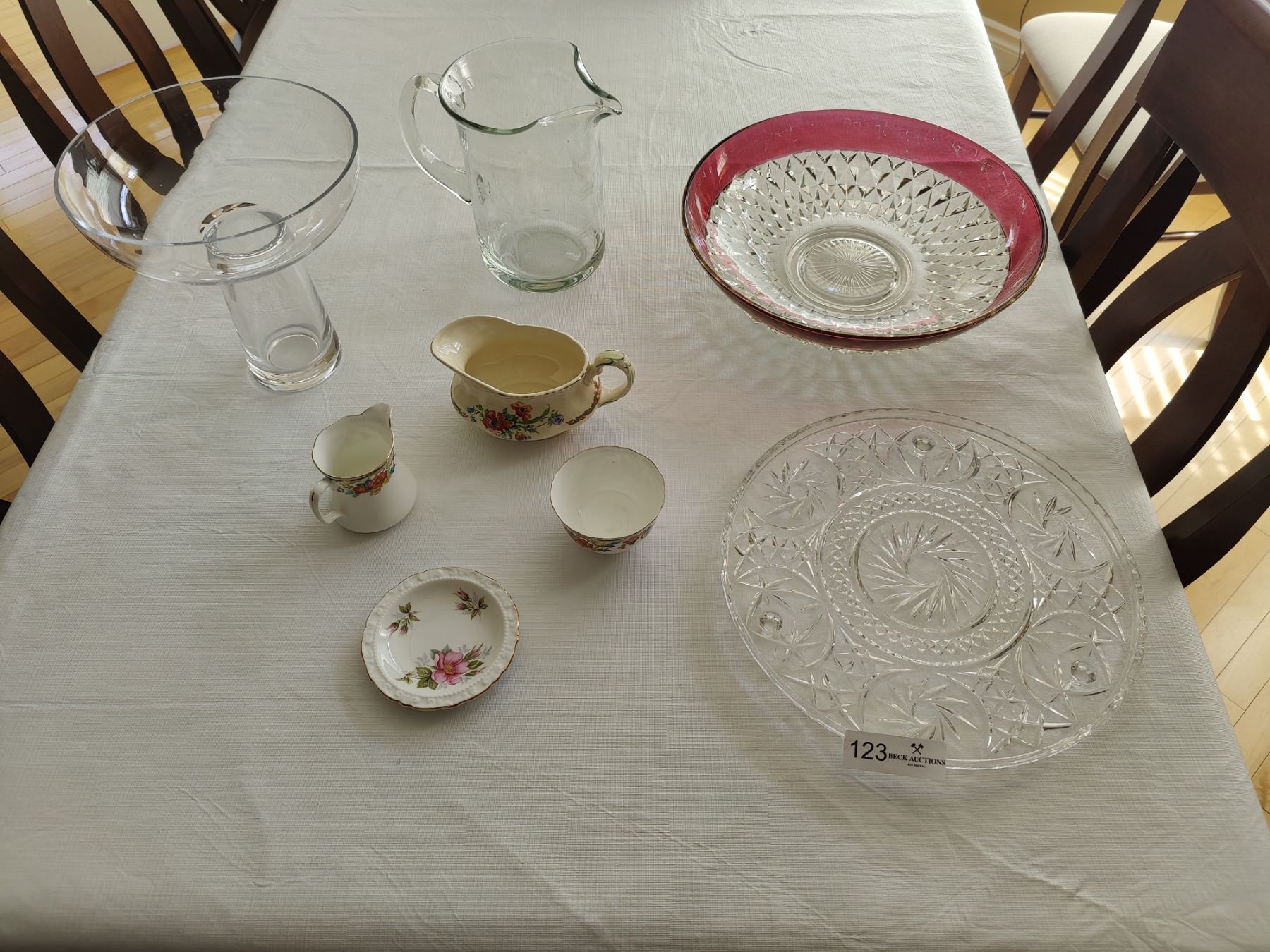 Radfords, Grindley, and Paragon China, Pitcher, serving platter, decorative bowl and vase.