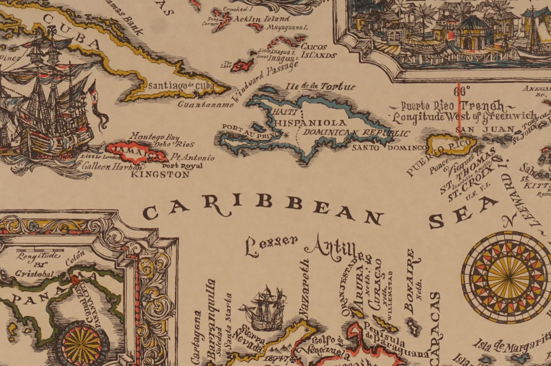 Decorative Map of The West Indies w/ Cartographic Illustrations