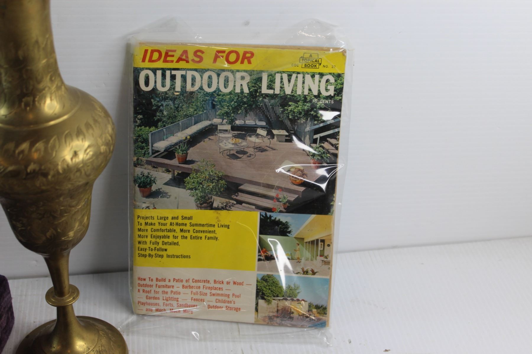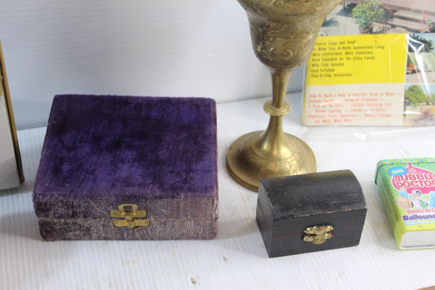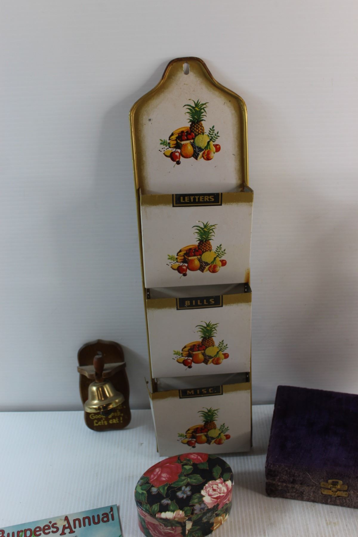 Decorative Paddle, Document Organiser Rack, Bell, Brass Vase, Jewelry Box and Assorted Items