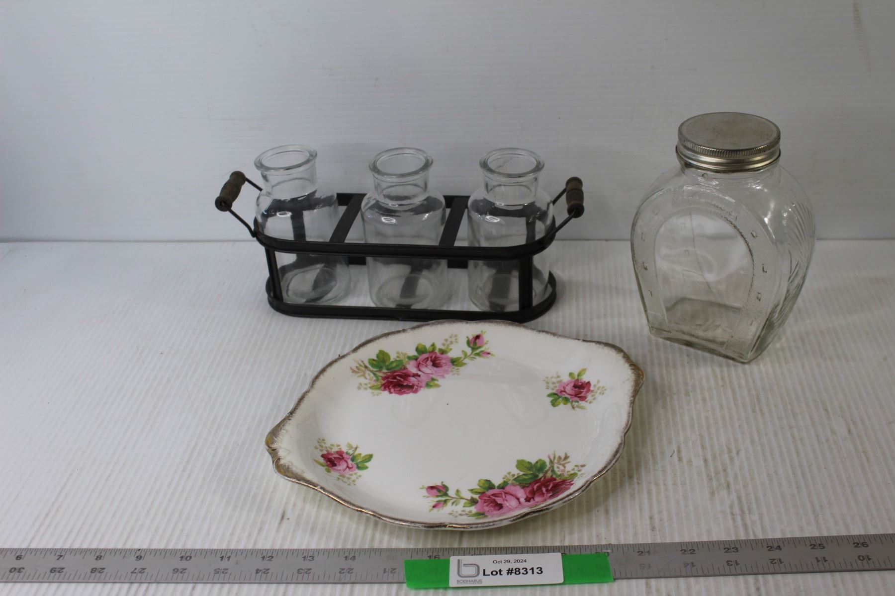 Decorative Plate, Jar, Jar Tray with (3) Jars