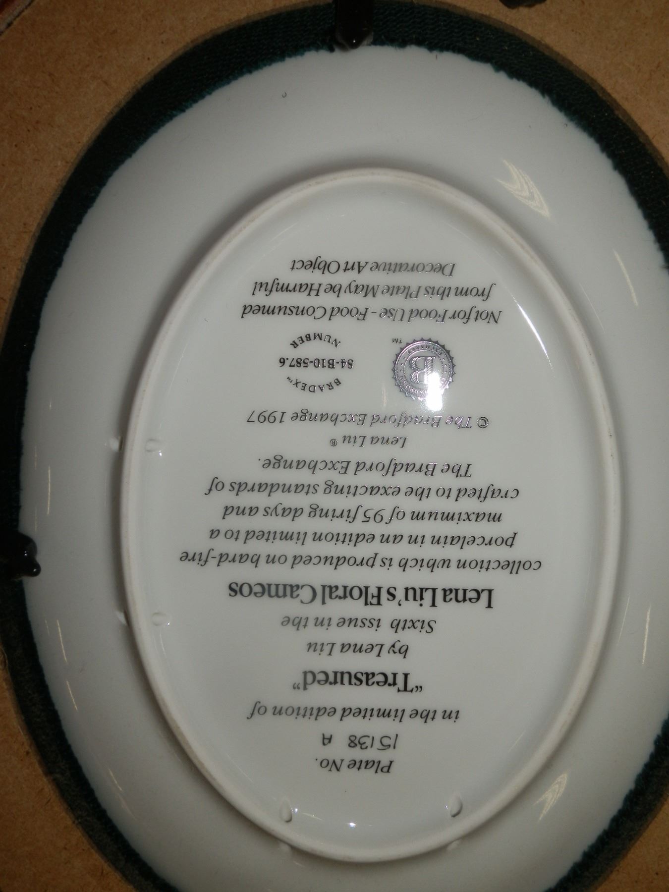 Decorative Plate, Treasured by Lena Liu, numbered 15138 A, Bradford exchange....