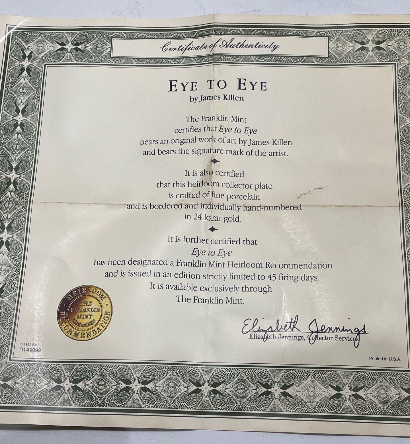 Decorative Plates Franklin Mint Hierloom Reccomendation  Beginners Luck   Eye To Eye