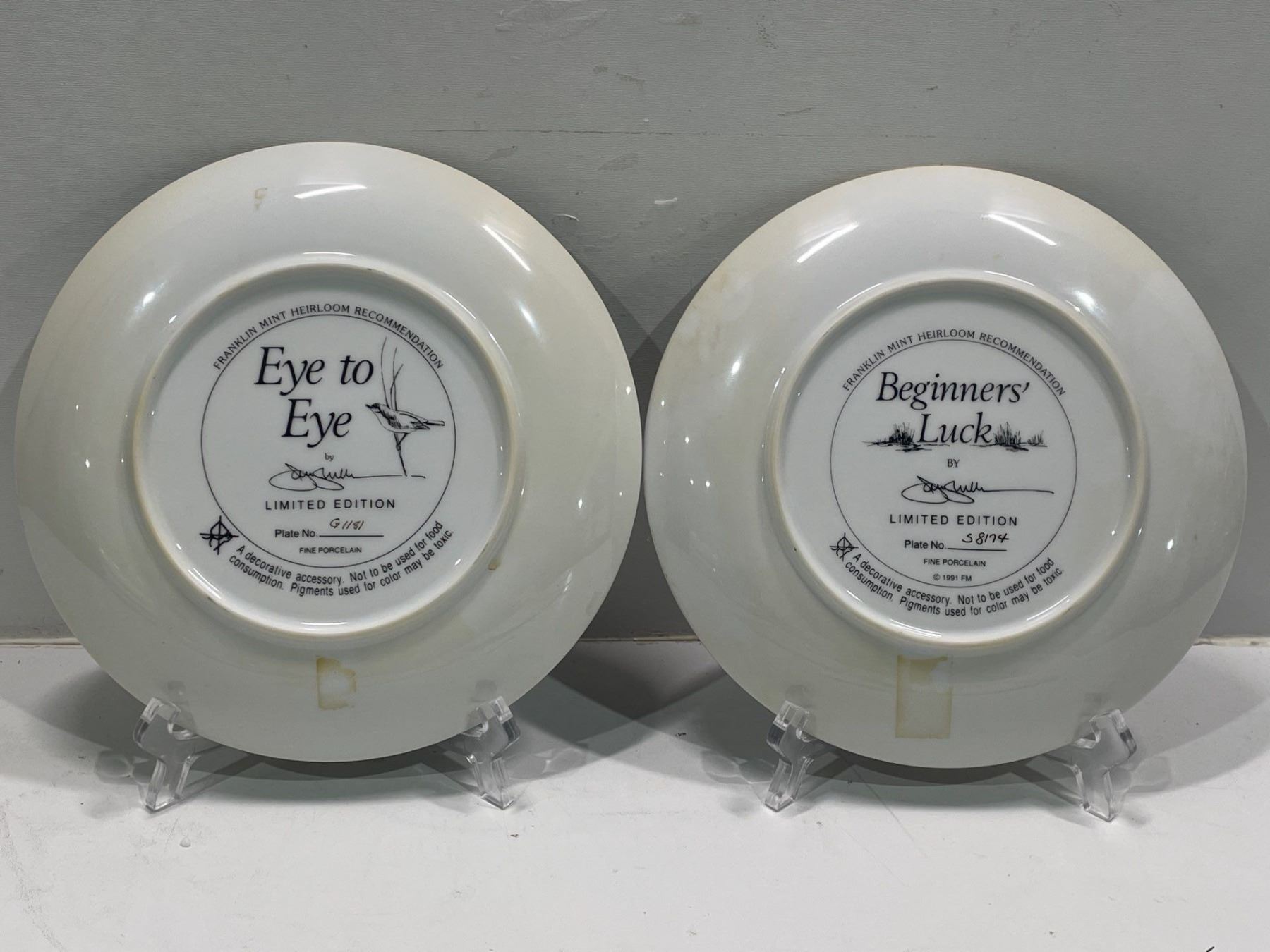 Decorative Plates Franklin Mint Hierloom Reccomendation "Beginners Luck" "Eye To Eye"