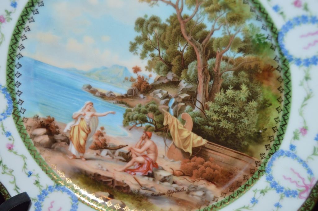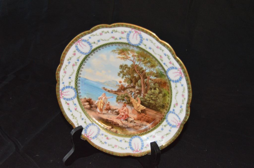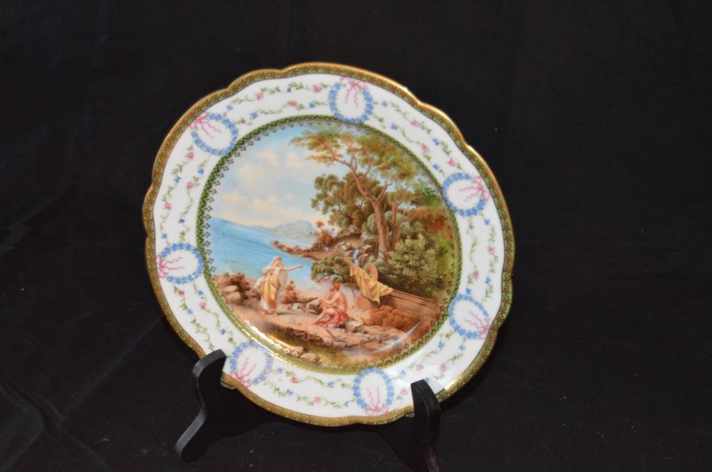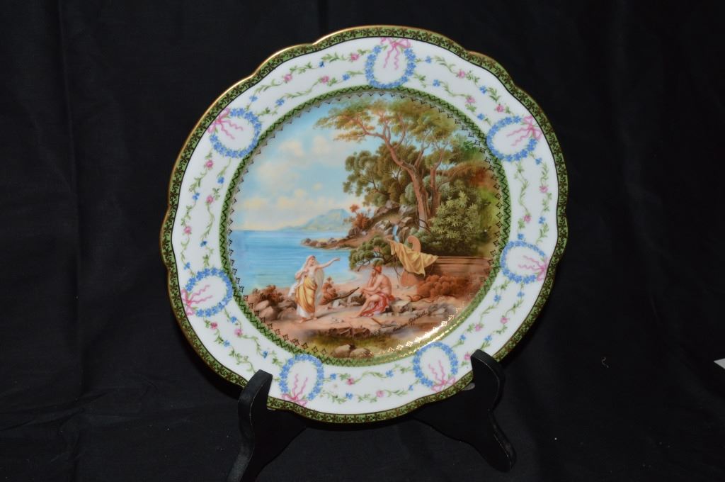 Decorative Servers Plate With Roman Scene As Originally Painted By The Italian Artist, Andrea Appiani Scallop Edge French Circa Early 20th Century Excellent Overall Condition Minor Wear Scratching And Wearing Of The Gold Present