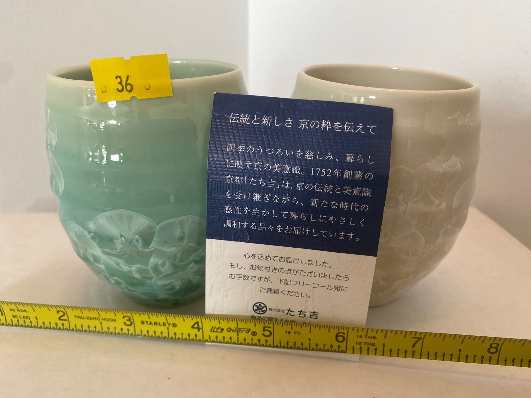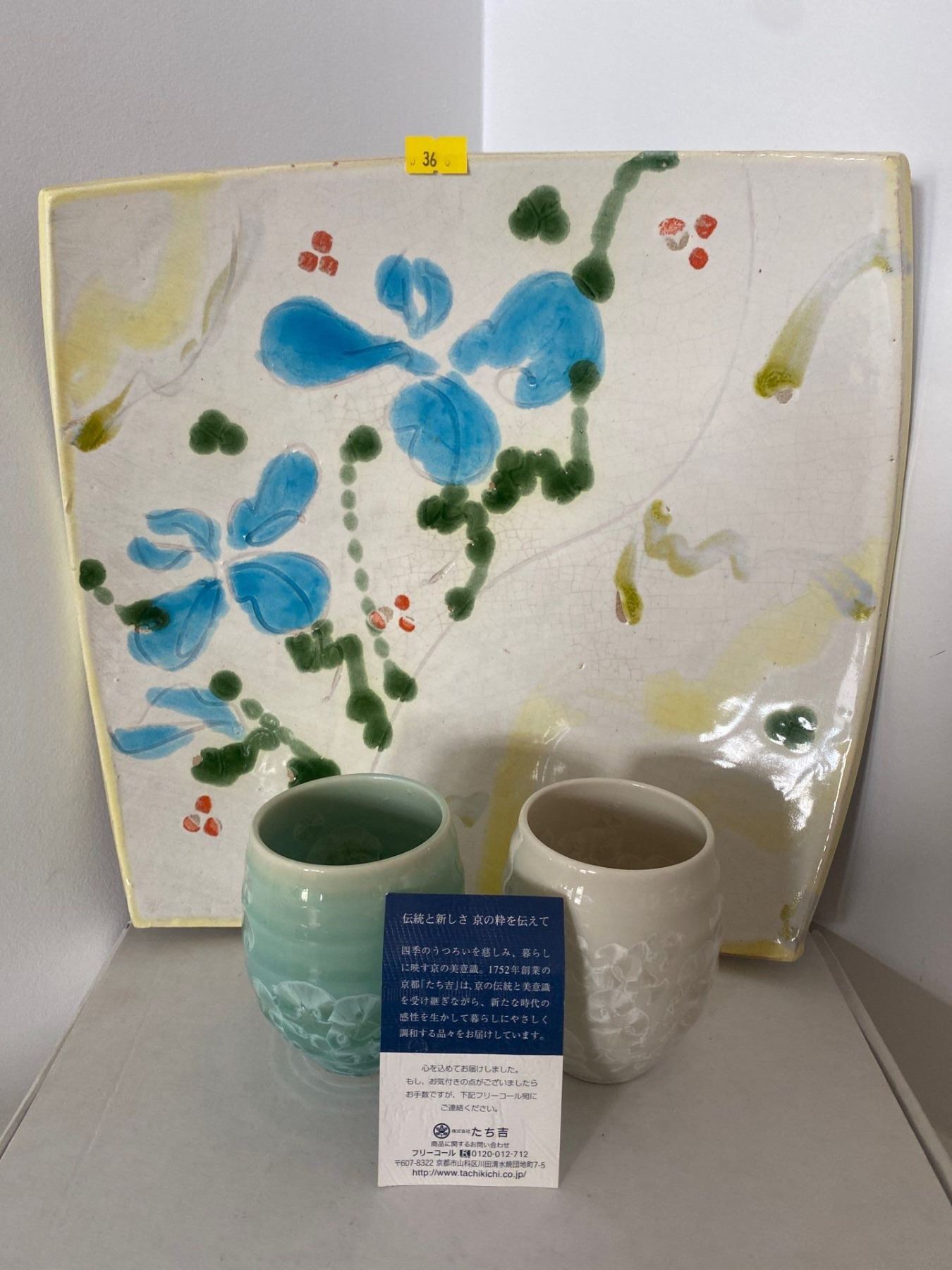 Decorative Serving Plate w/ 2 Authentic Japanese Kyoto Cups