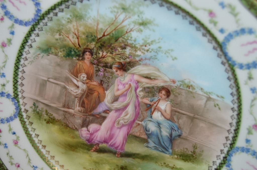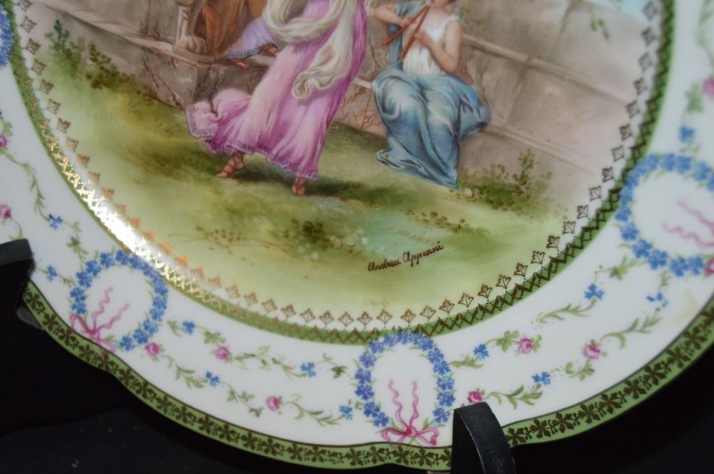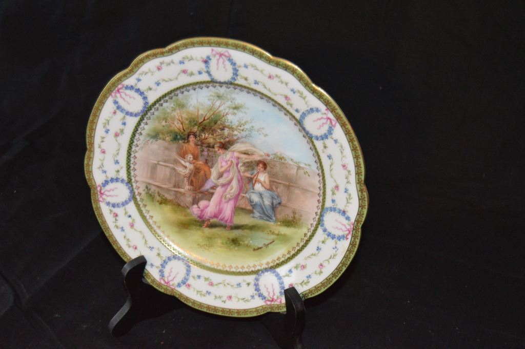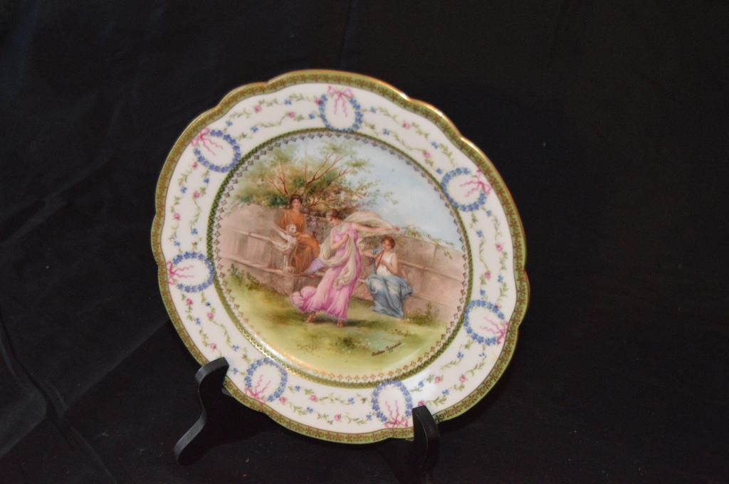 Decorative Servres Plate With Roman Scene As Originally Painted By The Italian Artist, Andrea Appiani Scallop Edge French Circa Early 20th Century Excellent Overall Condition Minor Wear Scratching And Wearing Of The Gold Present