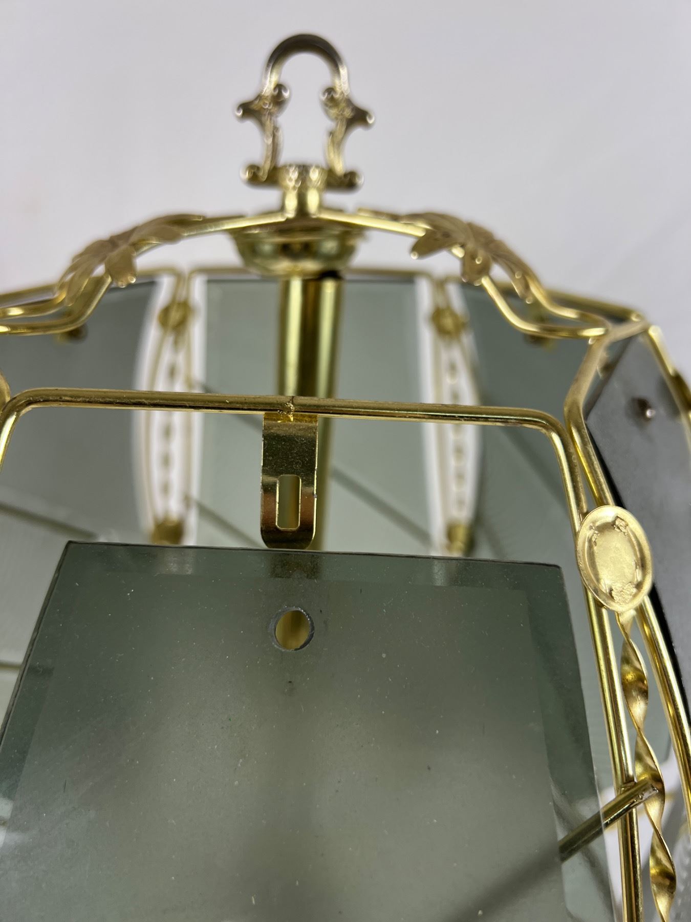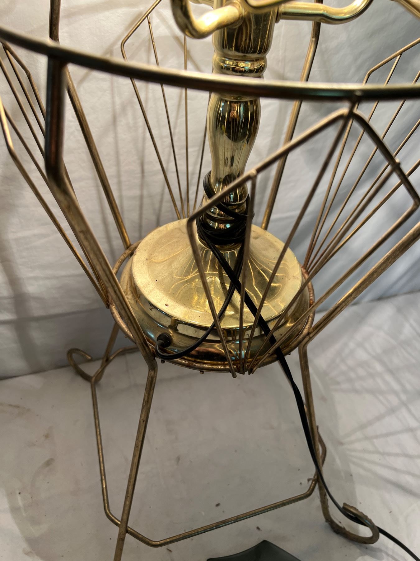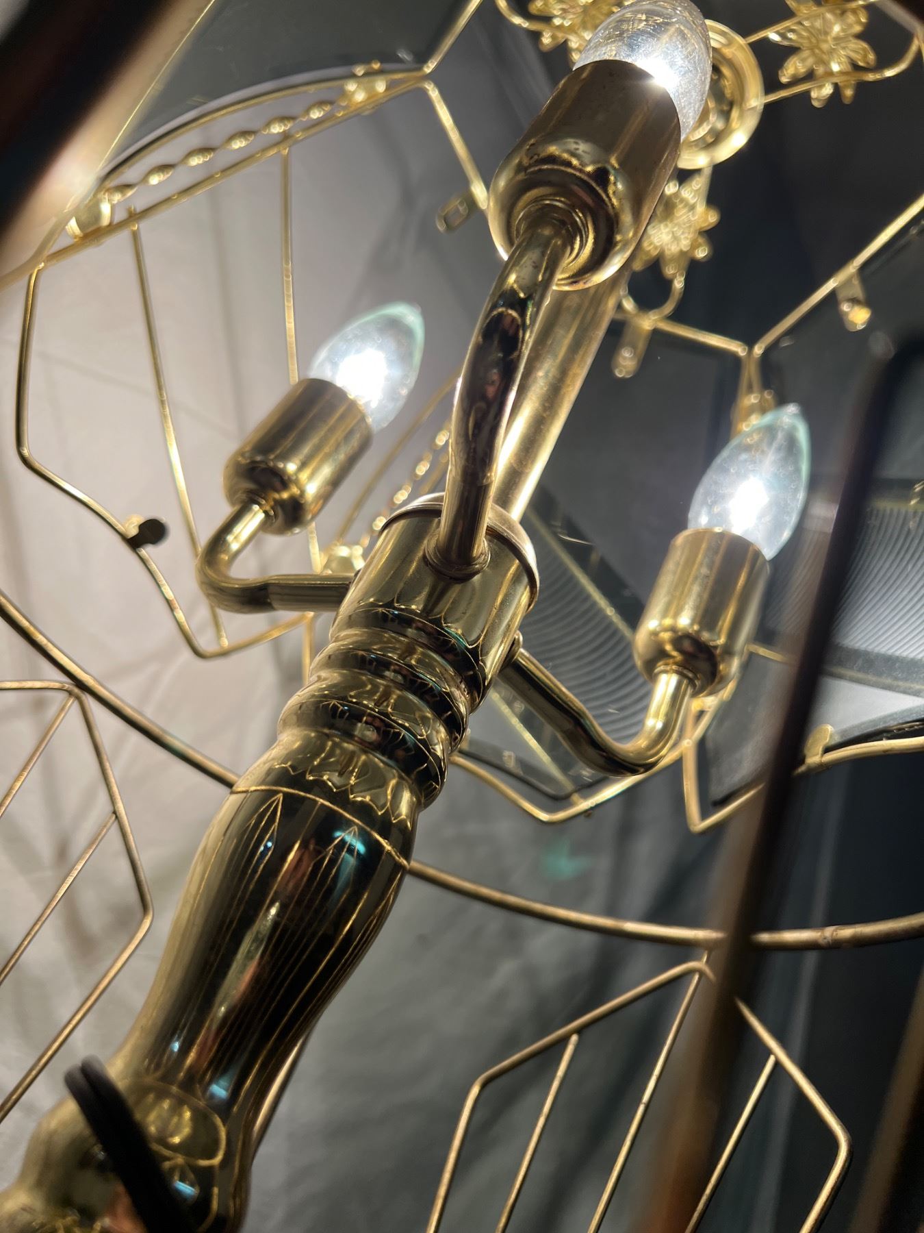 Measures 34" tall by 12" in approximate diameter at widest point of lamp shade. Glass panel missing set screw. Unknown if touch features working. Had old bulbs for first set of testing where touch was working, was swapped as they burnt out and touch feature is not responding with new bulbs.
