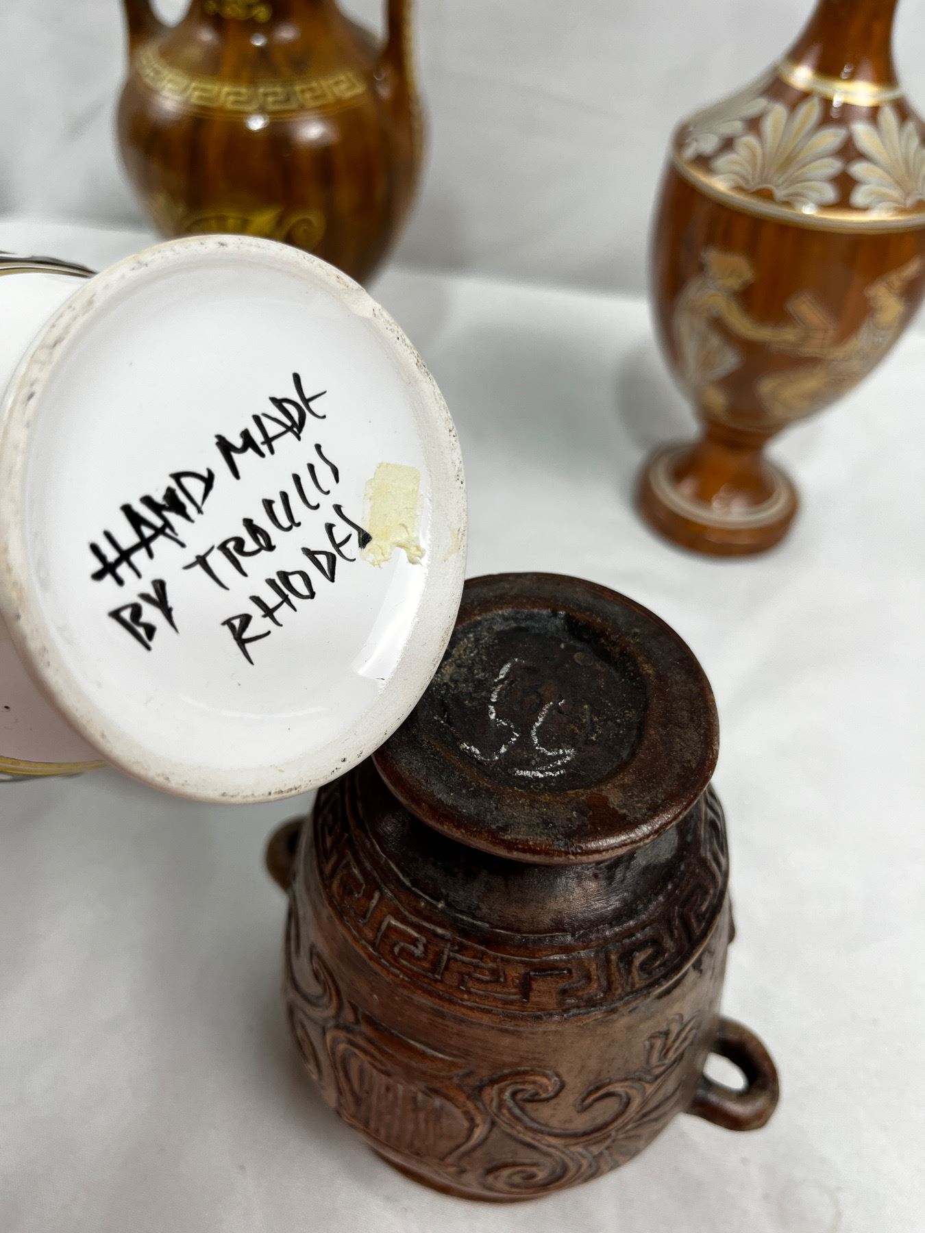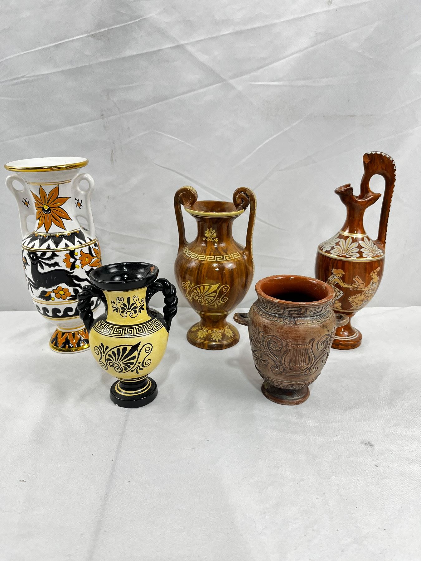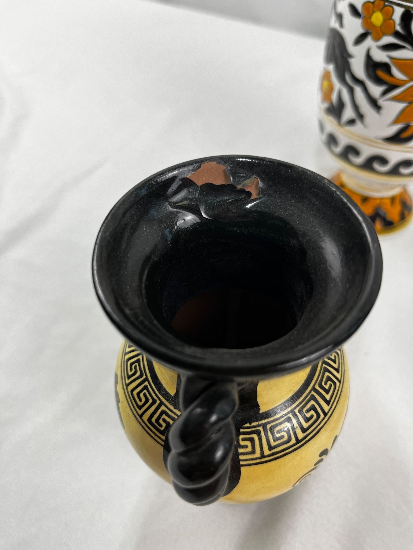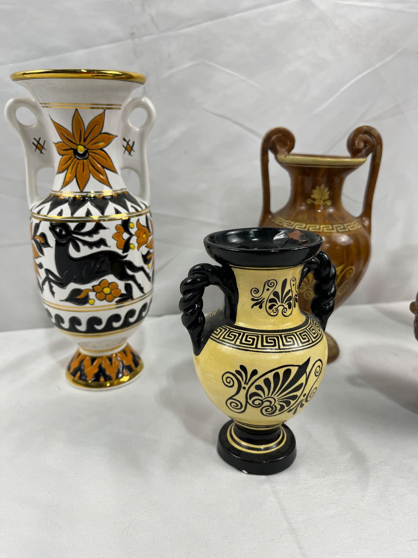 Tallest; 9"H, enamel flaking on one vase